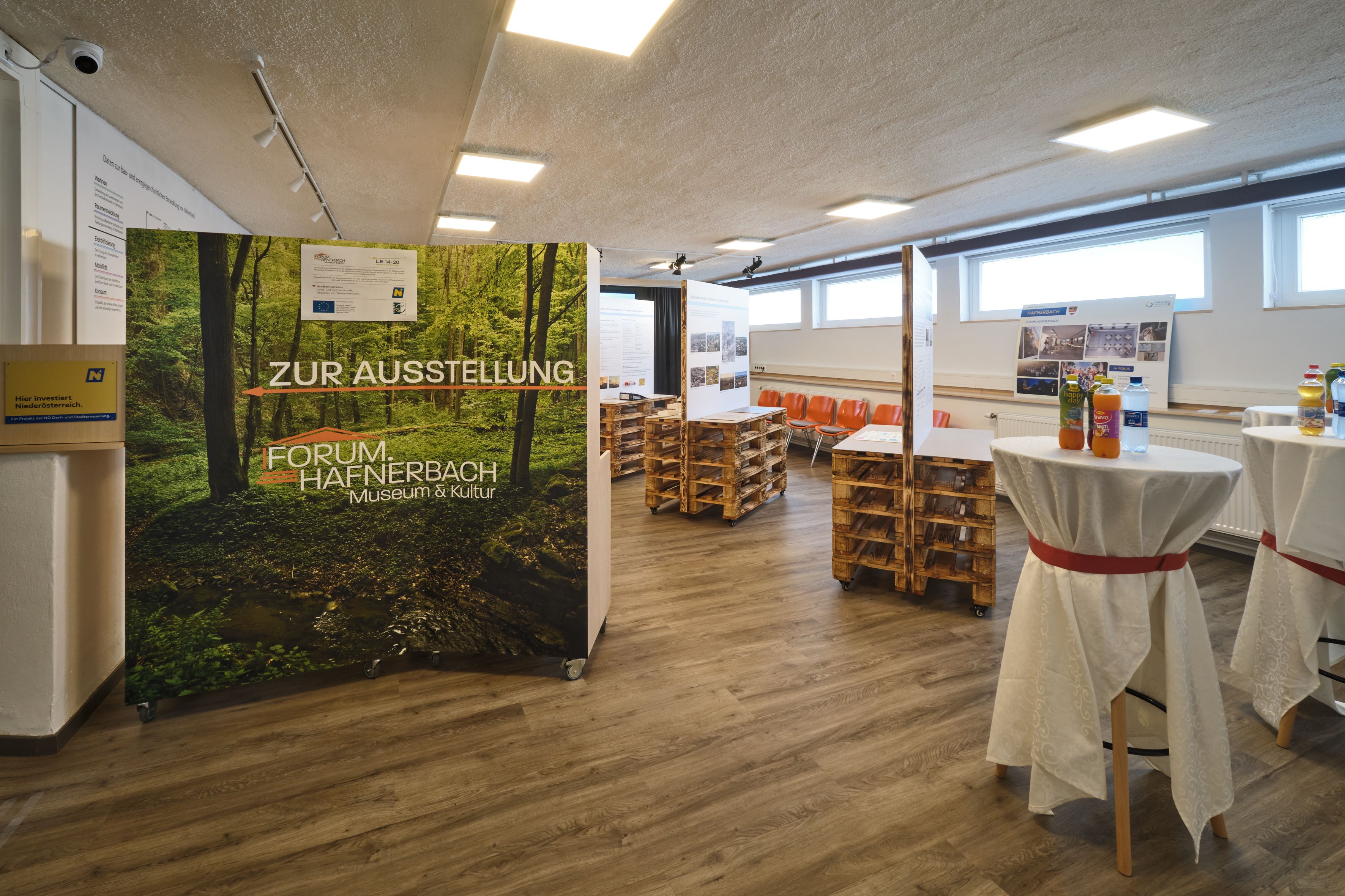 The Forum.Hafnerbach is the newly created cultural center of the market town of Hafnerbach on the southern edge of the Dunkelsteinerwald. On the one hand, it offers a technically well-equipped room for 40 people that can be rented for events. Next to it is the newly designed "local history museum".