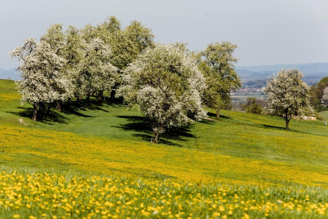 From Neuhofen towards St. Veit, you will find this wonderful orchard meadow, where you can immerse yourself in a sea of yellow, green and white flowers.