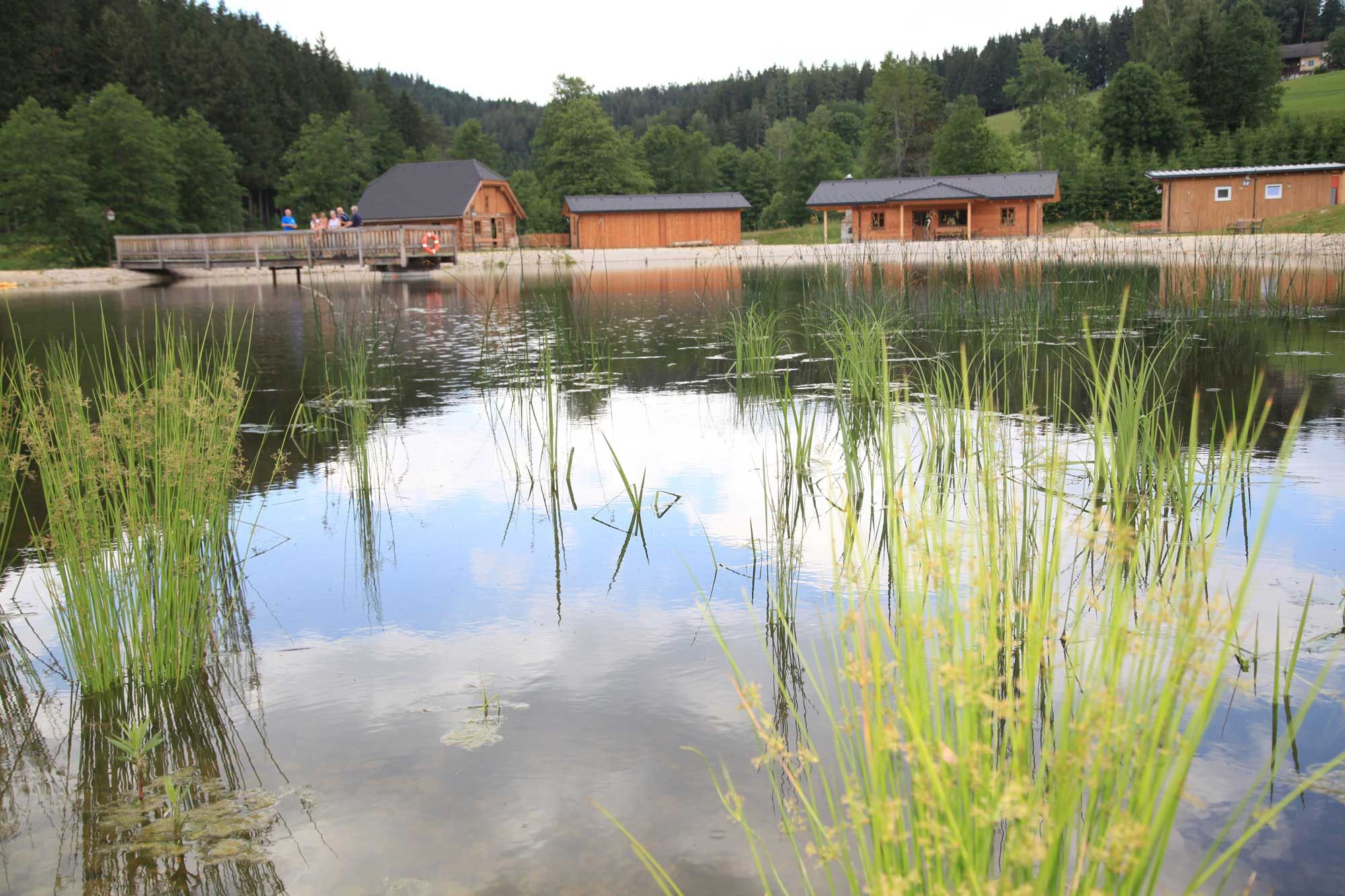 The landscaped pond at the Dorfstetten leisure center is surrounded by an idyllic natural landscape and invites you to relax and linger all year round. There is a natural playground next to the landscape pond, which offers children plenty of space to run around. The leisurely circular mill trail (No. 95) leads past the landscape pond.