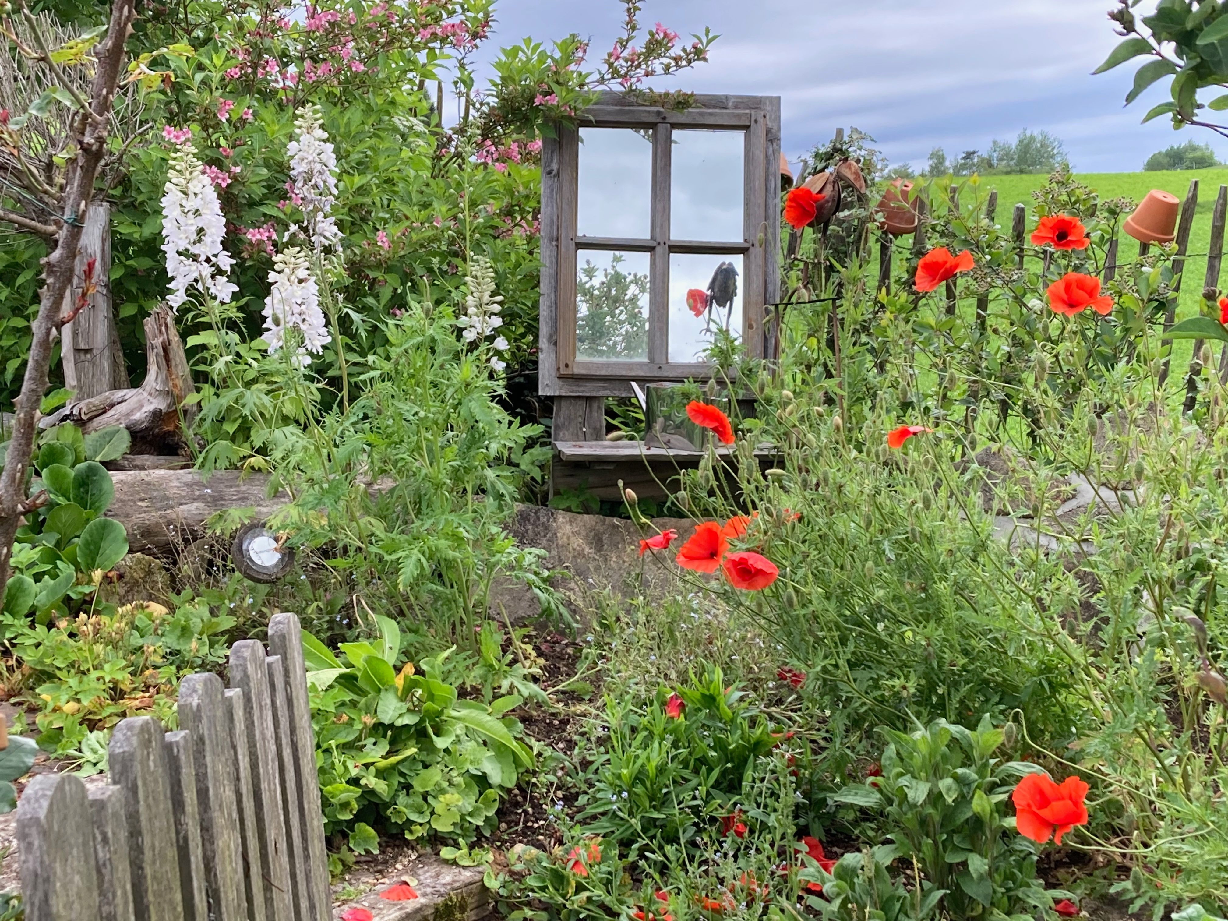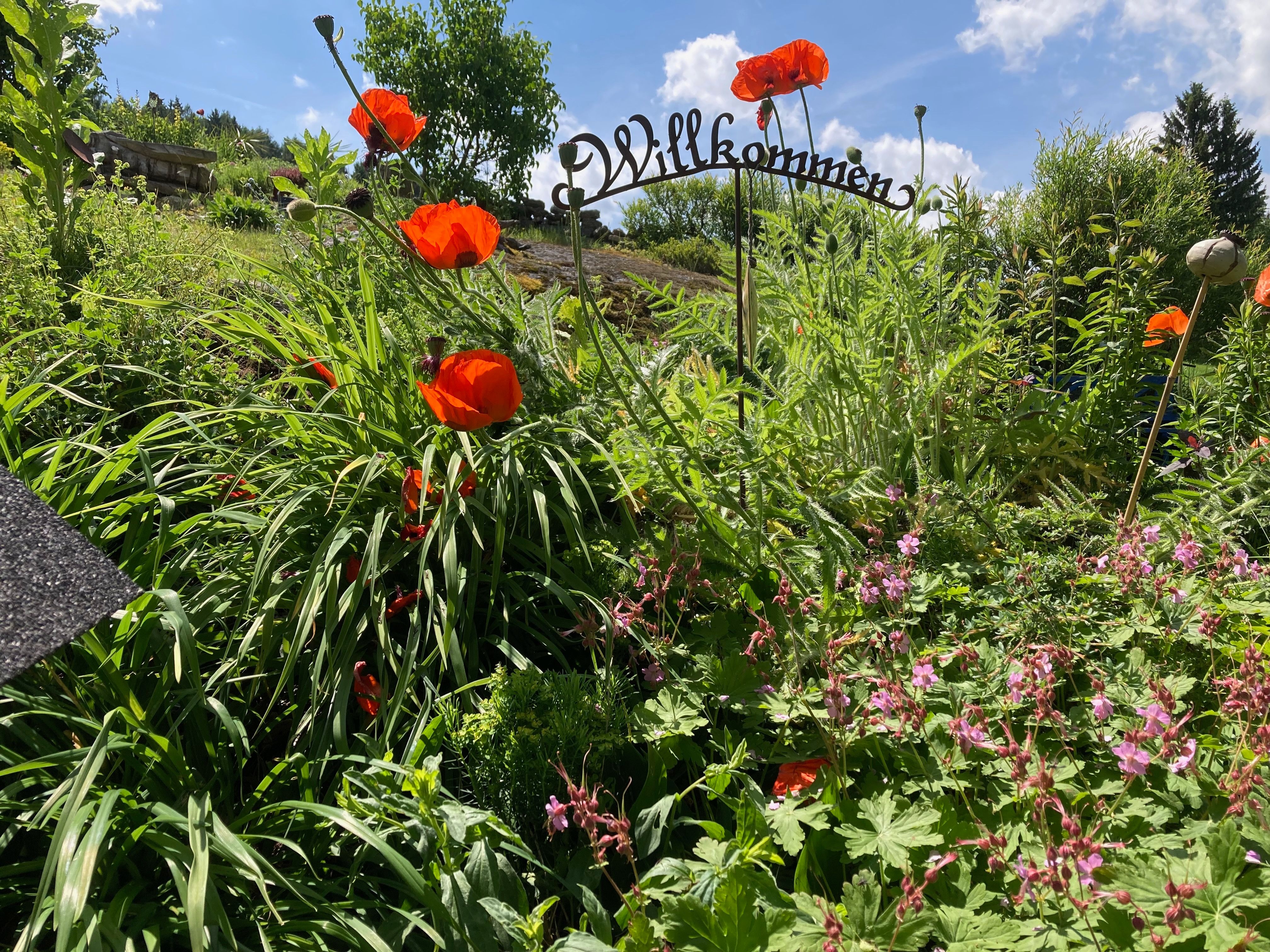 The 2500 m2 hillside garden impresses with its great design, a variety of flowers, blossoms and wild shrubs. Already a member of Natur im Garten for 20 years and many awards for ecological cultivation and care with the "Golden Hedgehog"! A terraced vegetable garden is used for self-sufficiency and many design ideas adorn the garden.