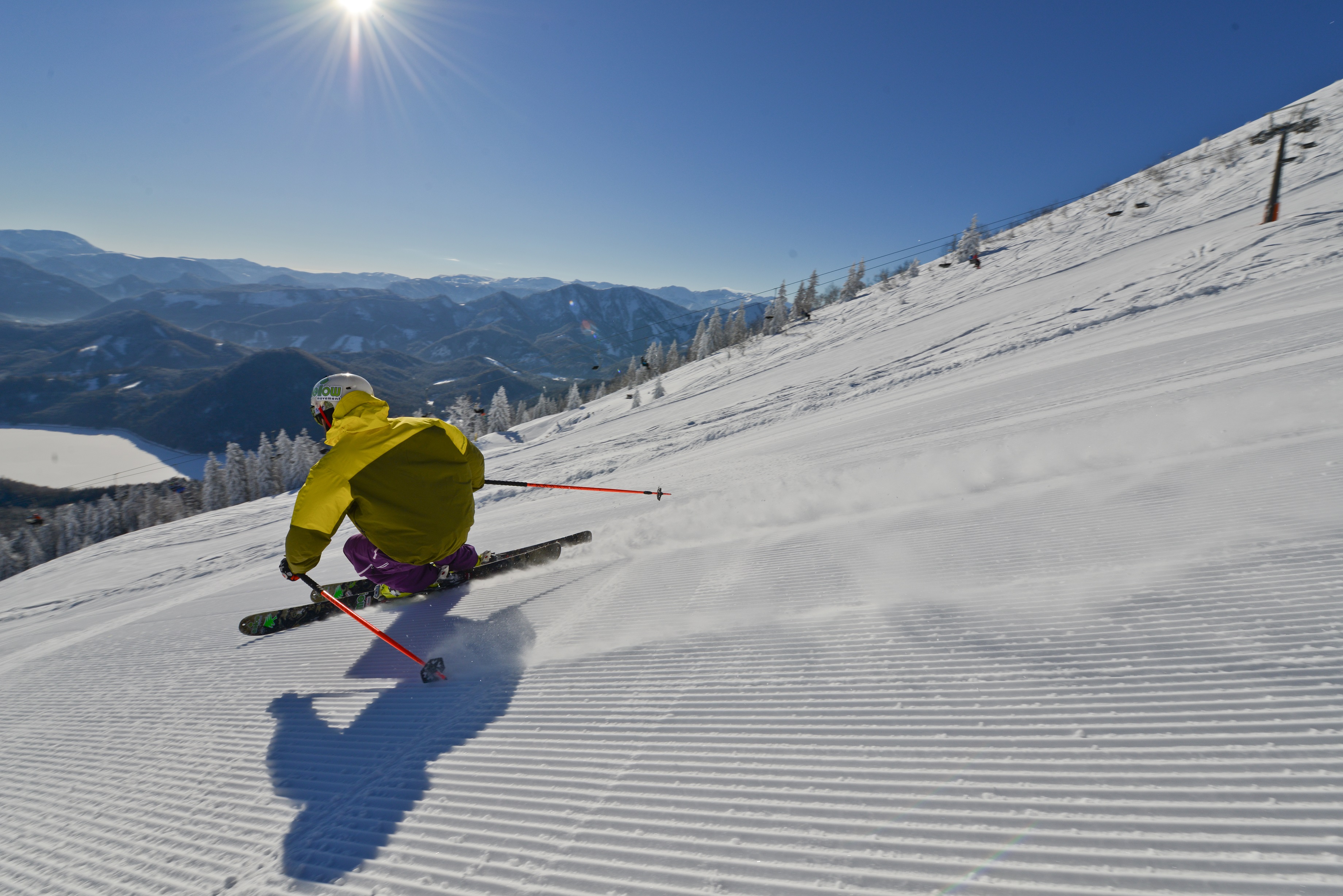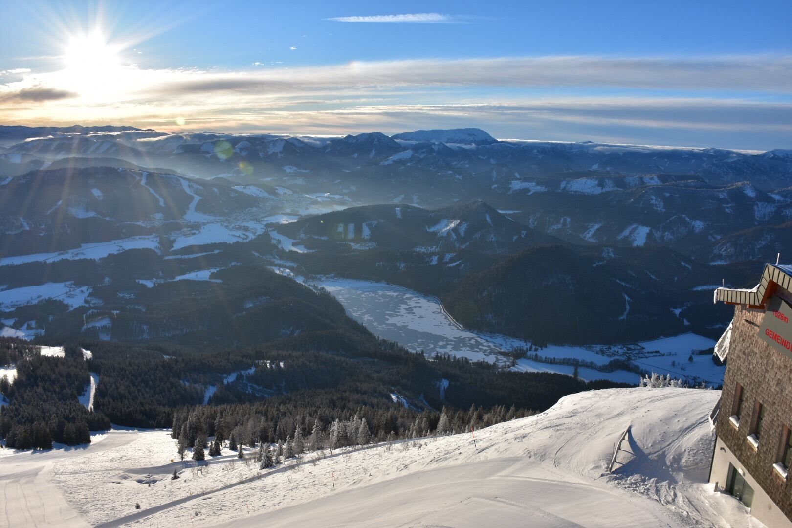 There are many reasons to spend a day skiing on the Gemeindealpe: for example, the steepest natural slope, the most impressive mountain panorama or the coolest snow park in Lower Austria. Despite the low lift density, almost 15.5 kilometers of diverse slopes entice you to enjoy a varied day of skiing. The freeride area below the summit also provides adrenaline rushes for experienced deep-snow virtuosos.