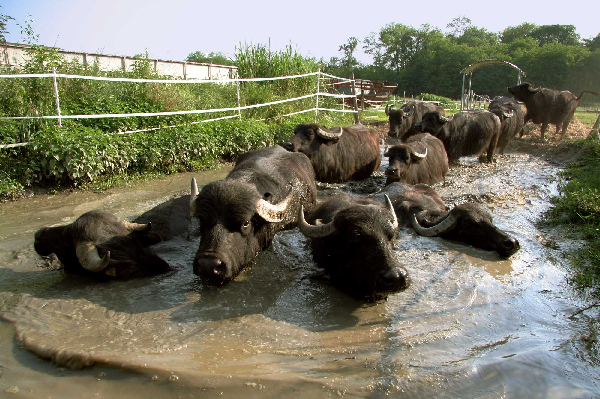 He produces the finest dairy products according to organic guidelines: Buffalo mozzarella (around May to September), buffalo and goat camembert, cream cheese and other seasonal cheeses, as well as sausage and ham from the farm's own animals.