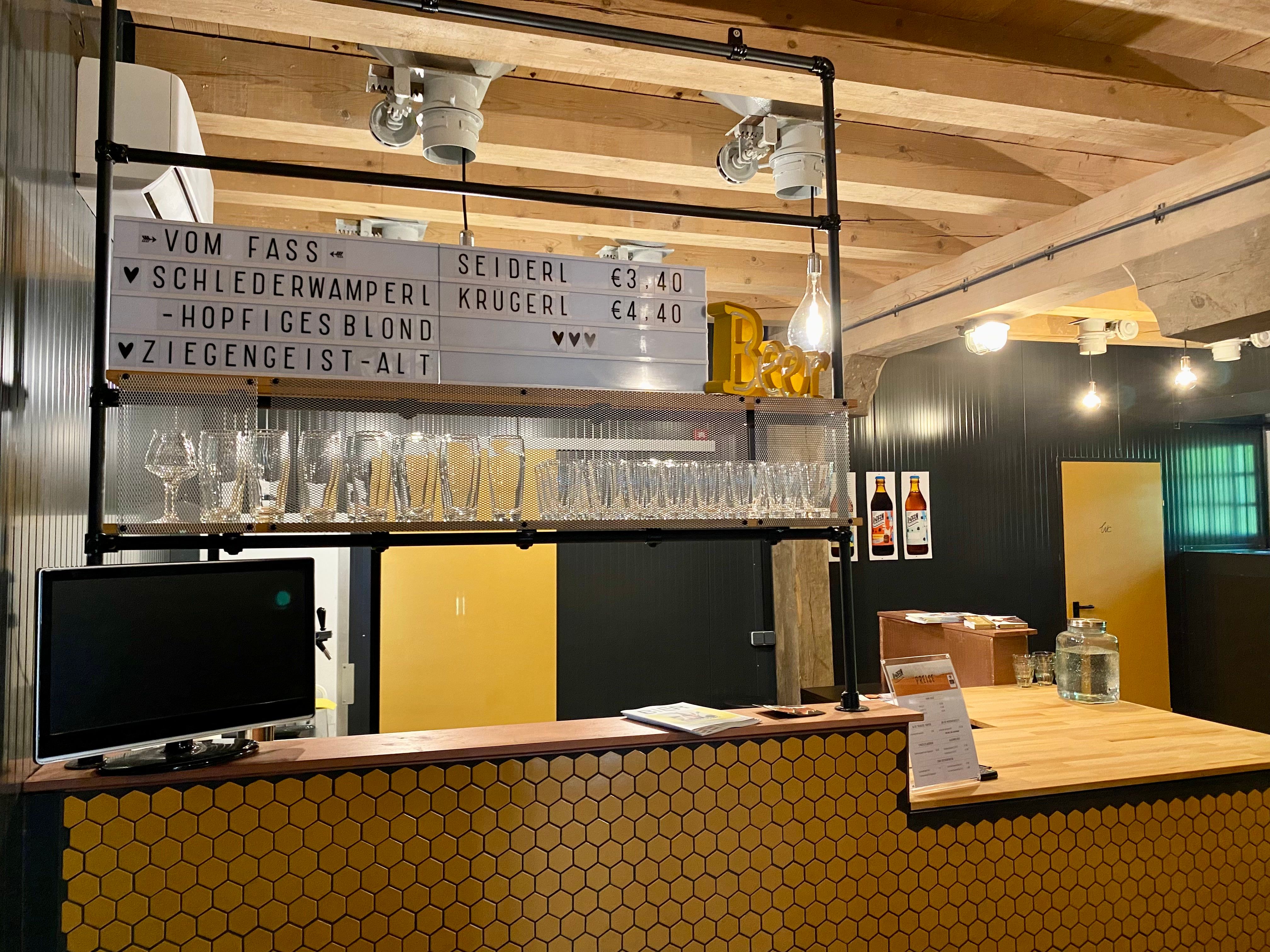 Of course, the 2020 pandemic quickly changed the situation. However, it was decided just as quickly that the pandemic-related standstill had to be used productively: Hopfenspinnerei goes Waldviertel! Evelyn Bäck and Gwaël Gauthier acquired a vacant mill in Waidhofen an der Thaya and adapted it for brewing operations. Brewing has been possible at the new location since fall 2021, and the sales and tasting area in the historic ensemble on the Thayaufer has also been in operation since summer 2022. During opening hours, beer is available to take away in bottles or to taste on tap. The range of beers is certified organic and includes the "Waidhofner Schlederwamperl" (blonde) and "Ziegengeist" (Altbier), two variants of the well-known, multi-award-winning Hopfenspinnerei standard. The range is supplemented by irregularly offered special brews. The popular home brewing workshops in the Waldviertel will of course continue - a separate workshop area has been set up for this purpose in the newly adapted brewery building. The brewery can also be visited on fixed dates. Attention: Limited number of participants - best to book online in advance!