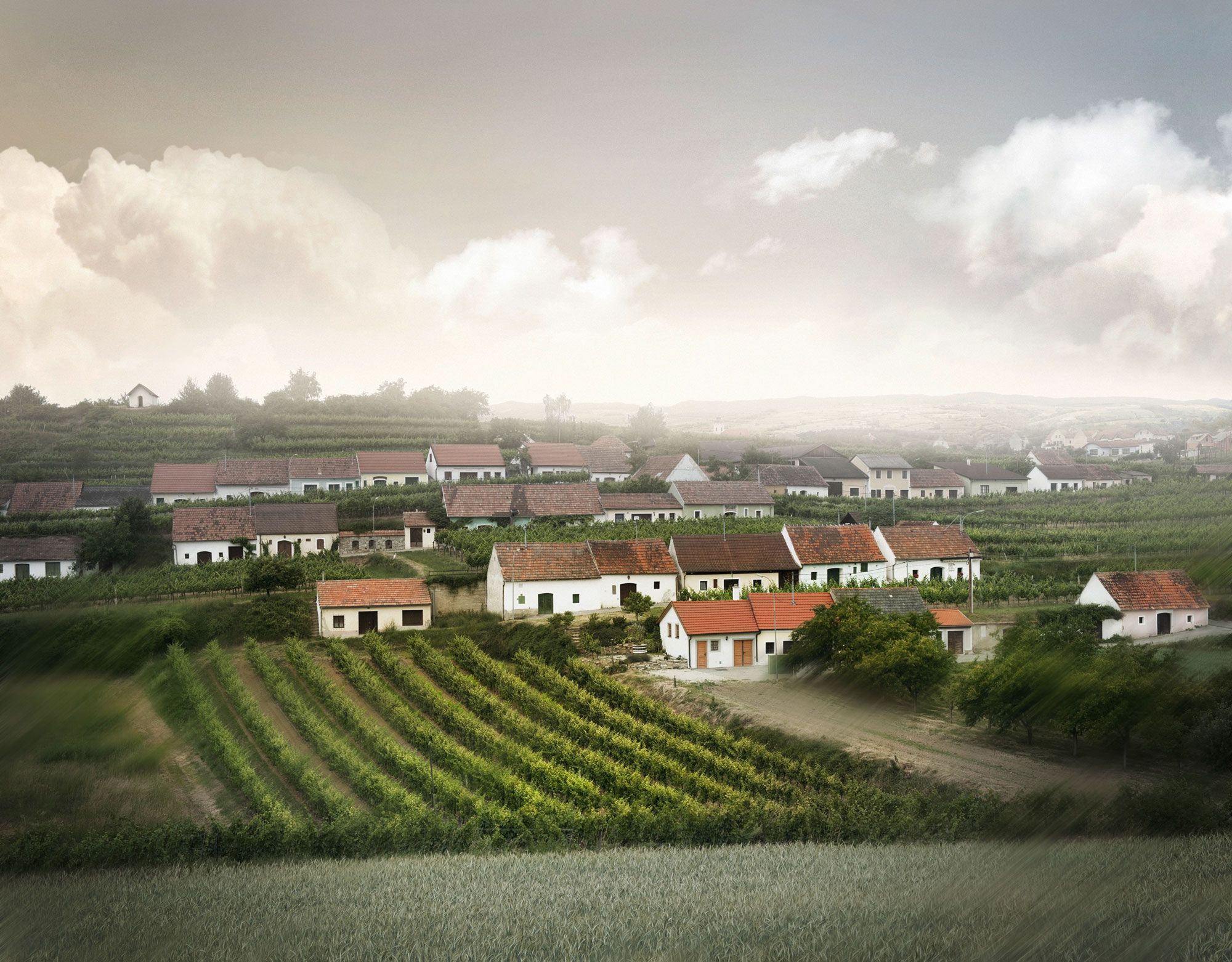 The idyllic wine cellar lane with its 48 press houses is located just outside Mittelberg, surrounded by large areas of vineyards. The terraced layout over four levels is unique and forms a charming ensemble of cellars. Here you can enjoy an exceptional view over the lower Kamp Valley ("Kamptal" in German) as far as the Danube and the foothills of the Alps.