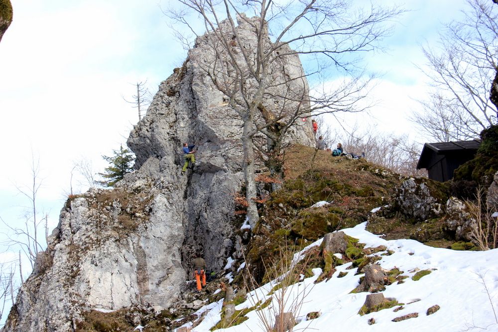 Thanks to the high location and the south-facing orientation of the rocks, the crag not only offers a great view as far as the Ötscher, but is also always easy to climb in winter and spring. The crag is located 6 km from the village center, the ascent from the parking lot takes around 25 minutes.