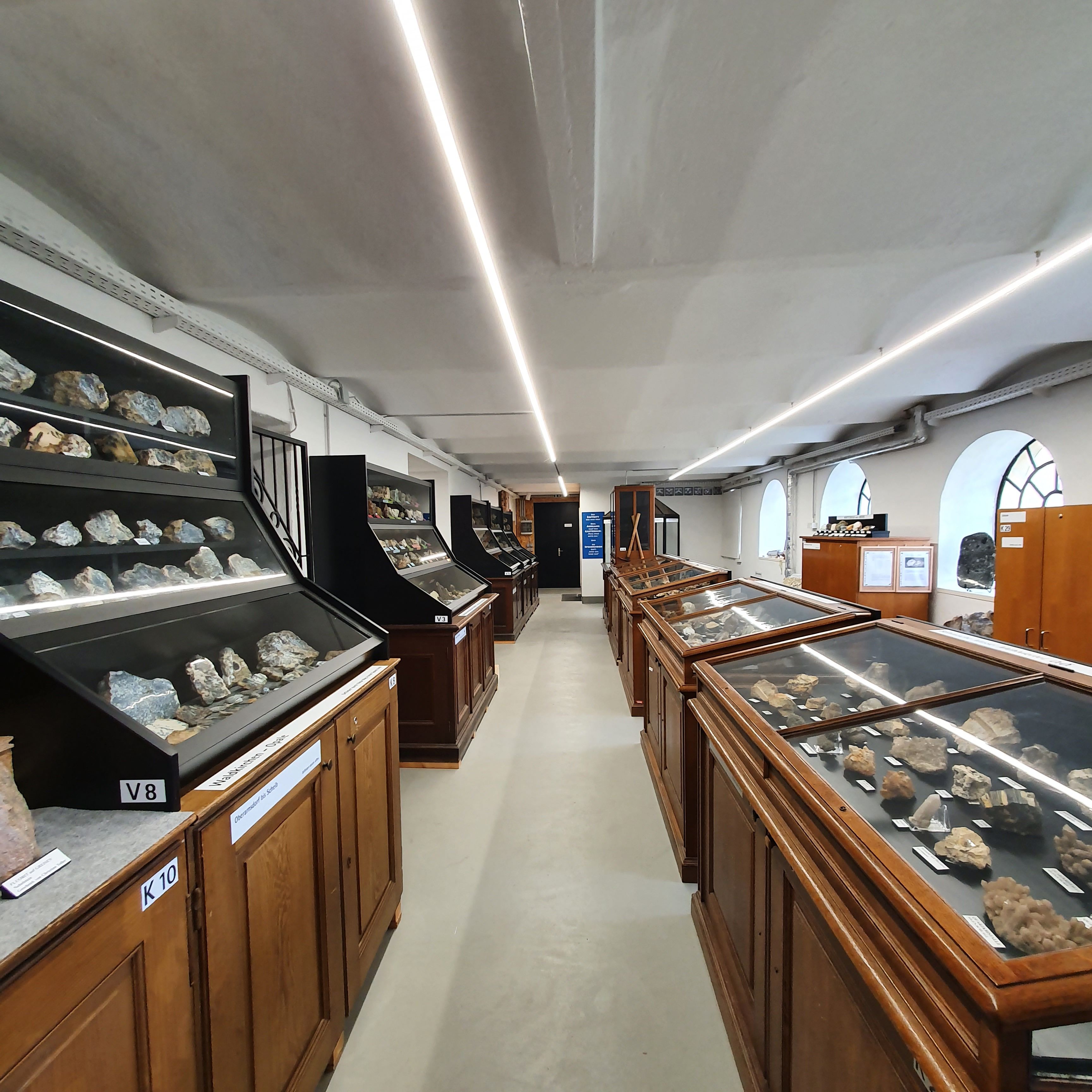 In the former furniture factory (Depot 2 of the Krahuletz Museum), just a few minutes' walk from the museum, the mineral show depot opens every first Saturday of the month from 10 am to 4 pm. Visitors can take a guided tour of the depot and learn more about the glittering treasures of the Waldviertel. Over 7,700 mineral species and 1,500 rock samples from the Waldviertel, the Dunkelsteiner Wald- and Mühlviertel as well as from the overlying Molasse zone have been collected for the collection by volunteers.