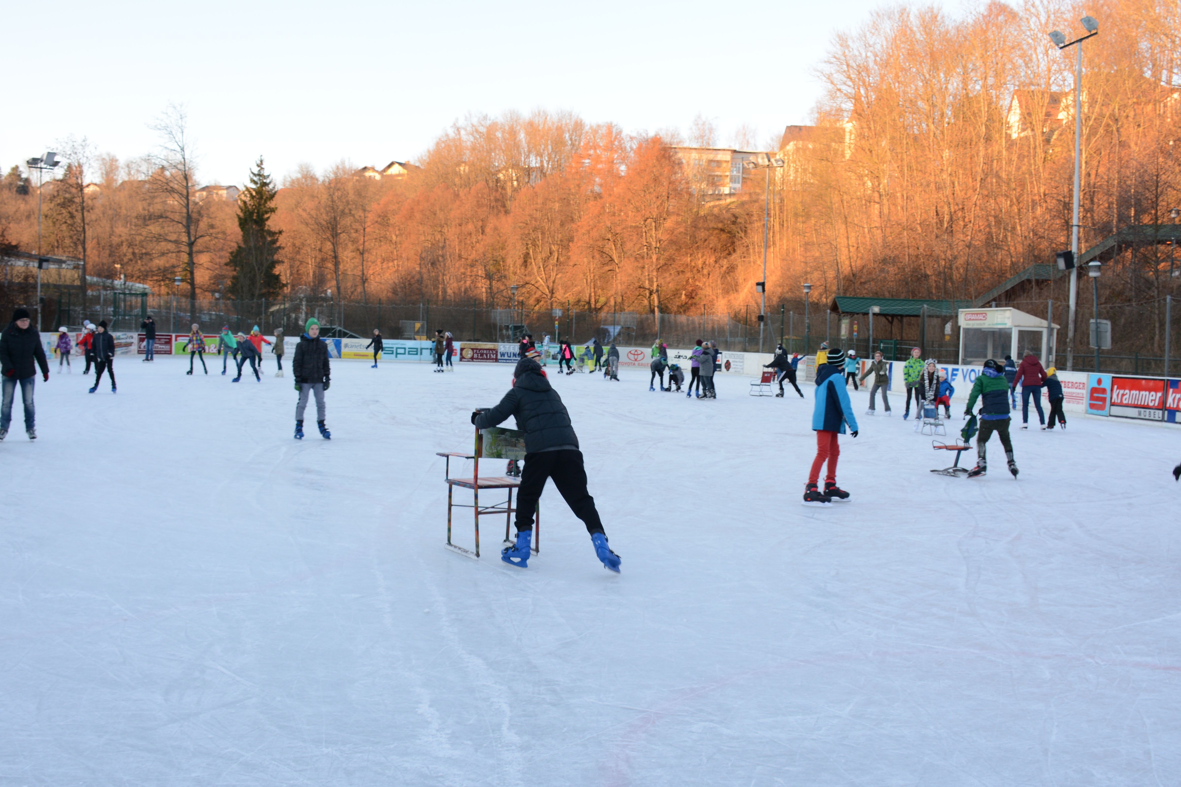 The Zwettl artificial ice rink has rental skates, skating aids in the form of chairs for small children and beginners as well as a canteen (accessible with ice skates), where hot and cold drinks and food are available. Smoking is prohibited in the entire building and free WLAN is available!