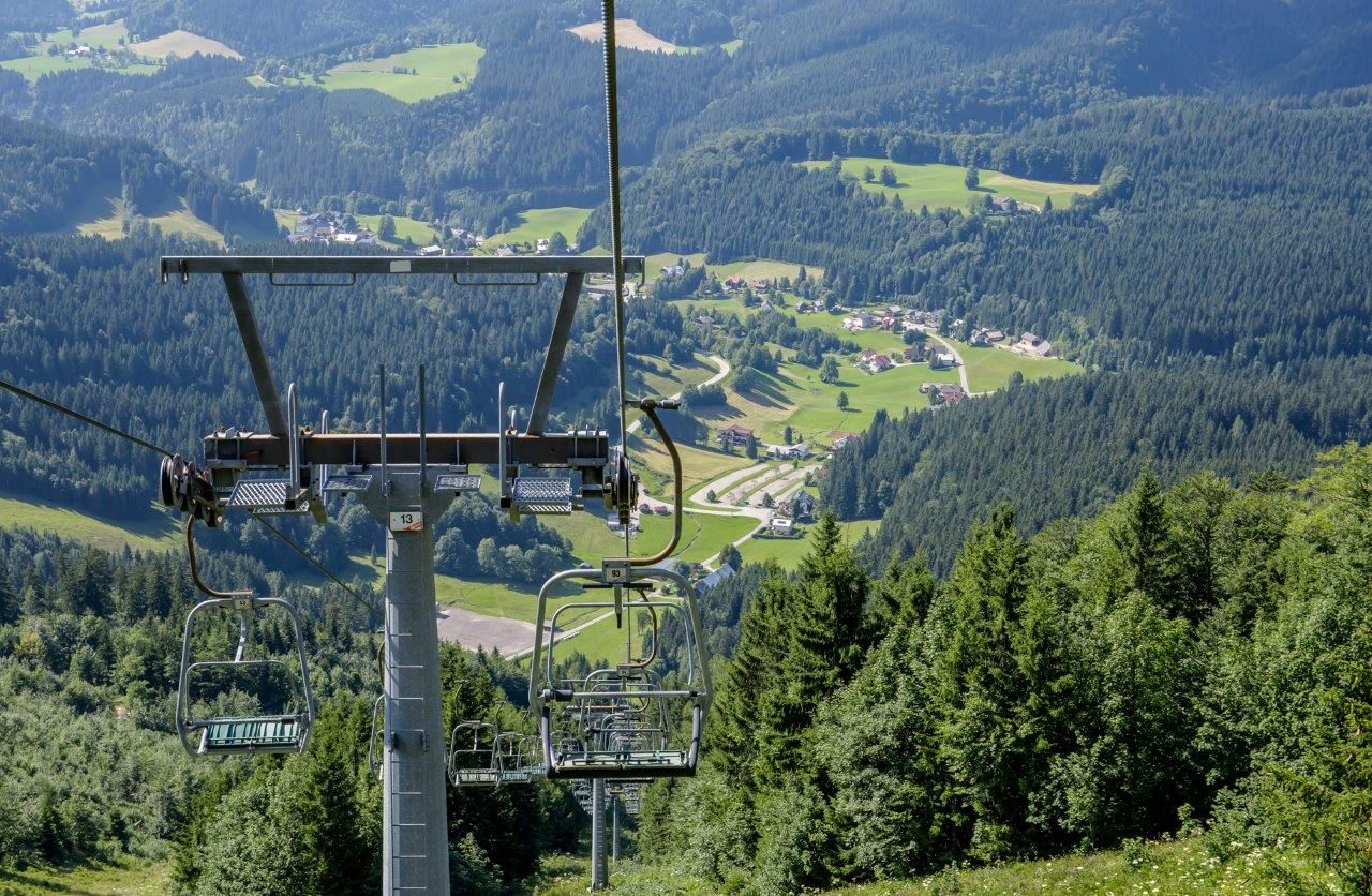 In summer, dogs are allowed on the side seat of the double chairlift. Liability lies with the dog owner.