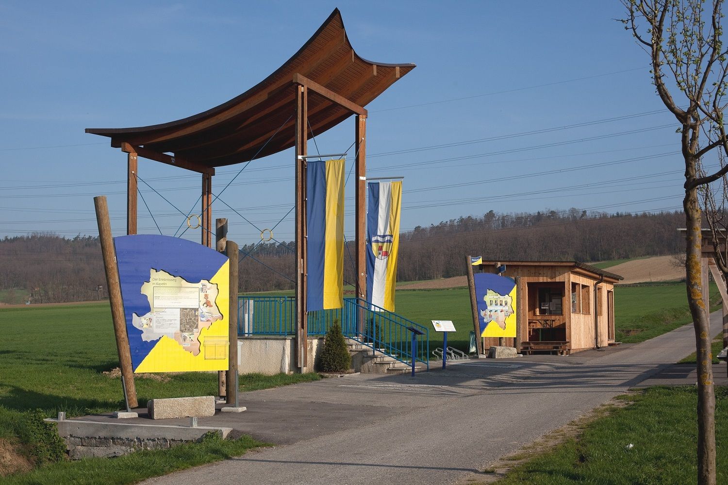 Named after the surveyor Maximilian Schubert, the Max-Schubert-Warte in the Killing district of Kapelln marks the center of the province. Three singing benches display the lyrics and melody of the first verse of Lower Austria's national anthem "Oh Heimat, dich zu lieben". The beautiful panoramic view of the foothills of the Alps extends as far as the Ötscher.