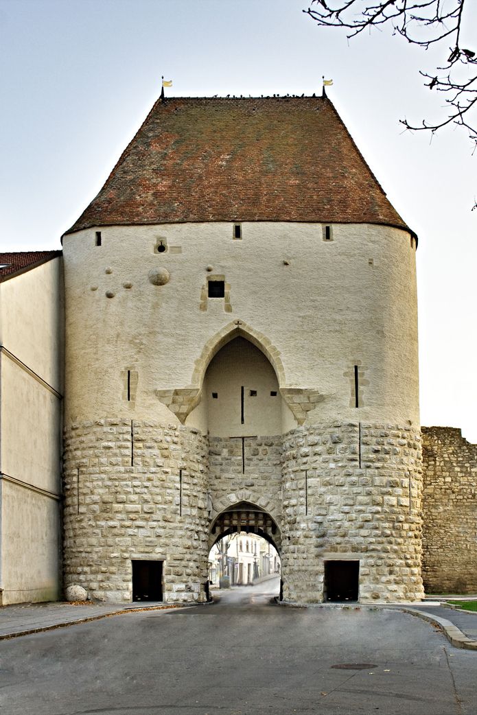The Vienna Gate is the largest medieval city gate in Europe. The lower part was built in the first half of the 13th century, the upper part in 1267/68 by Ottokar of Bohemia. The Romanesque structure is 20 m high and has an 11 m high roof construction.