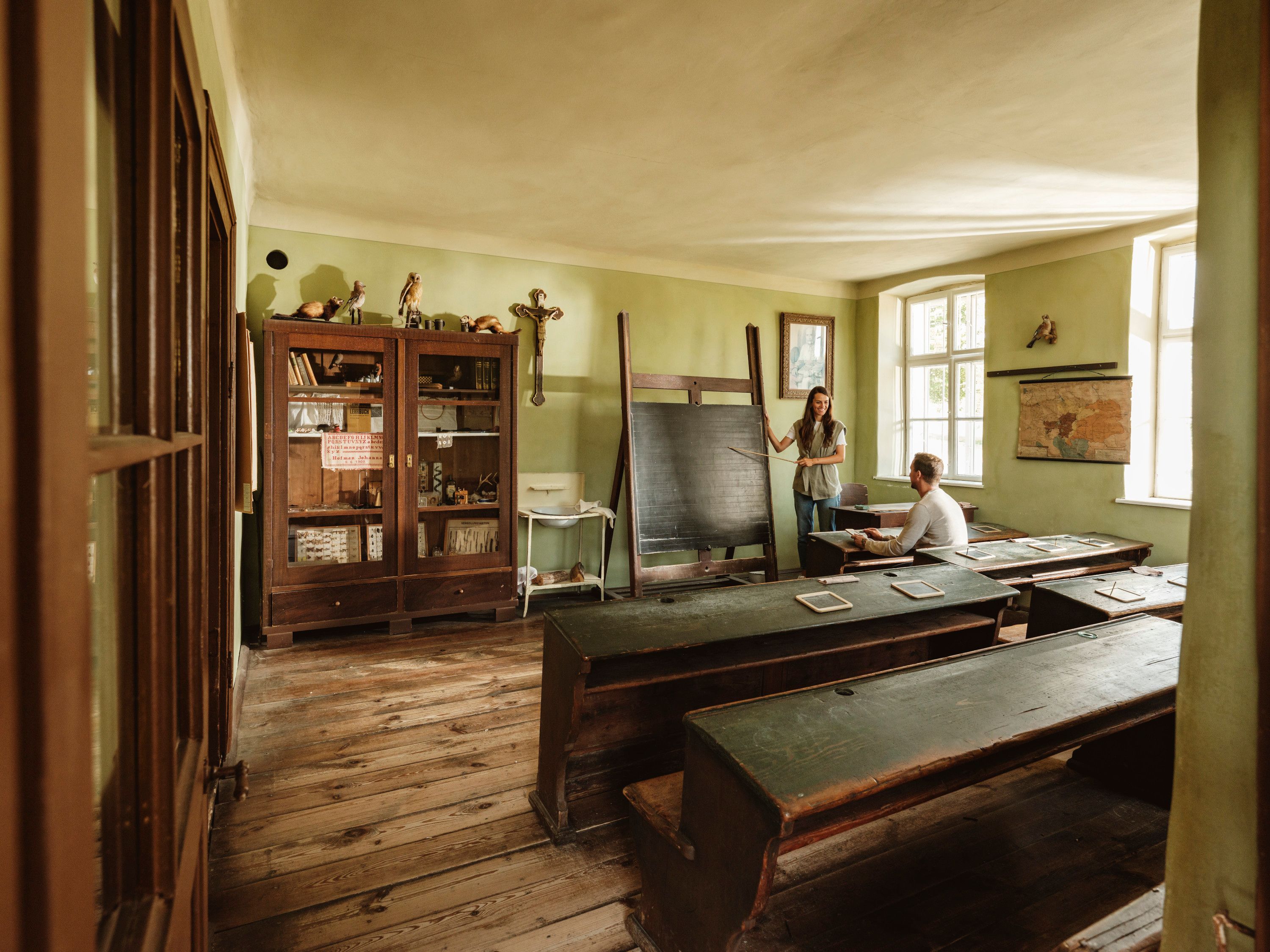 The educational format "Everyday life in the village - what was it like back then?" invites visitors to actively experience the houses, courtyards and workshops of the museum village every Saturday, Sunday and public holiday from 1 pm. Old crafts, traditional customs and the labor-intensive everyday life are thematized. The program is varied - saddlers, shoemakers and wainwrights demonstrate old craft techniques, cultural mediators talk about the saints of farming families, the everyday working life of day labourers and hygiene in the olden days. Work in the village, such as woodwork, washing clothes and school lessons, are demonstrated and can be experienced at first hand.