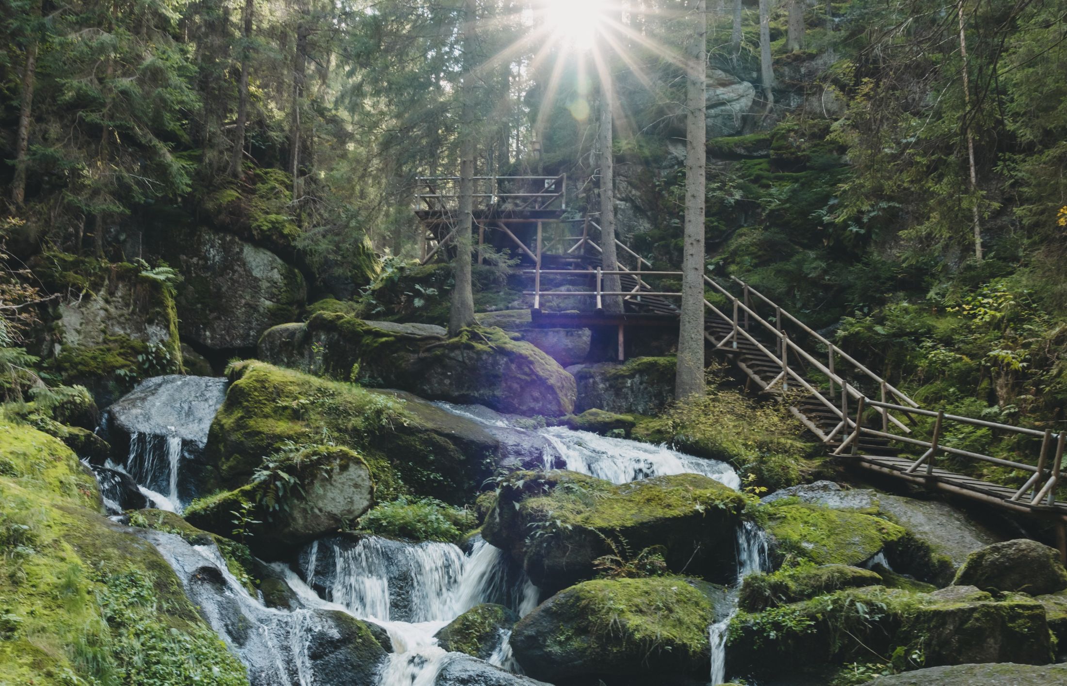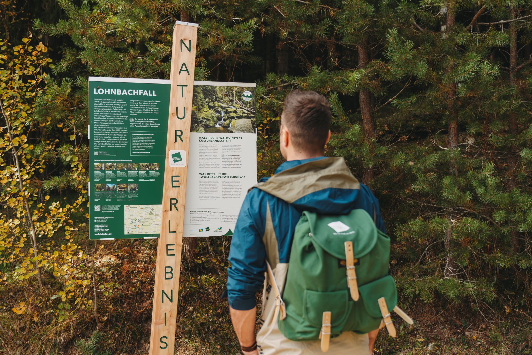 Hikers can explore the Lohnbach Falls via the secured footbridge. The Great Bear Trail continues above the waterfall to Altmelon or Pretrobruck. The variants of the Lohnbachfall trail are suitable for shorter tours.