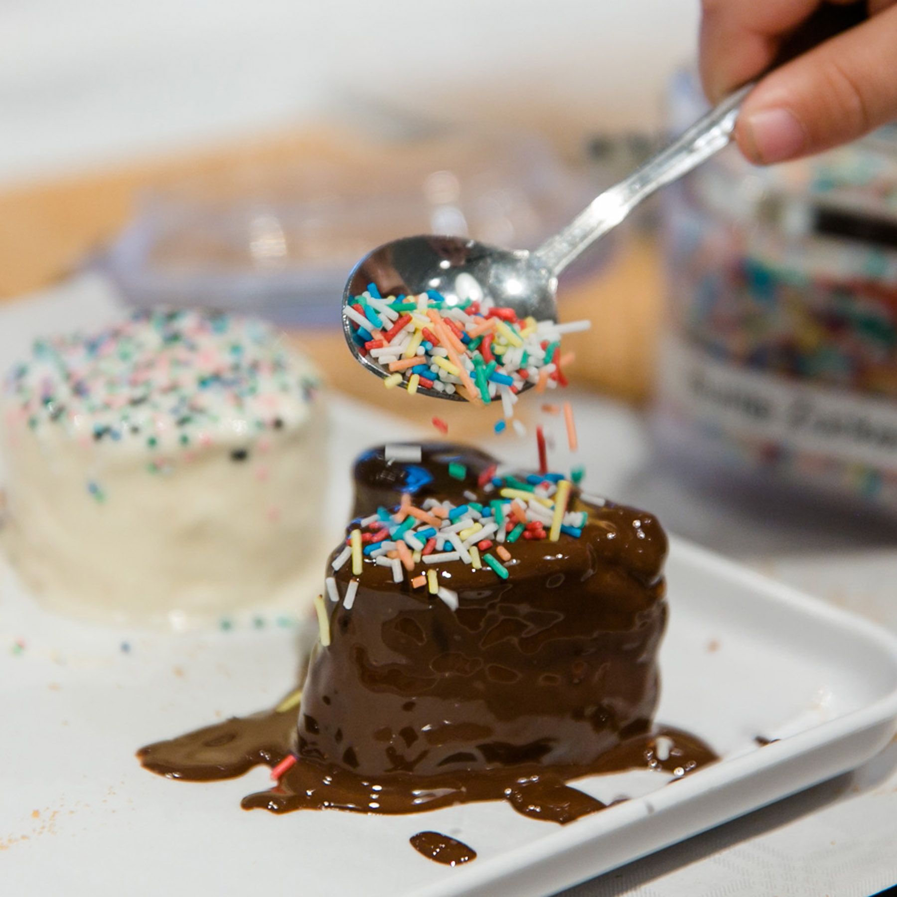 Lots of fun awaits the birthday child and their guests at the Schwedenbomben children's birthday party. Each child can glaze marshmallows with milk, white or dark chocolate and then decorate them with popular toppings such as colorful chocolate lentils according to their own preferences.