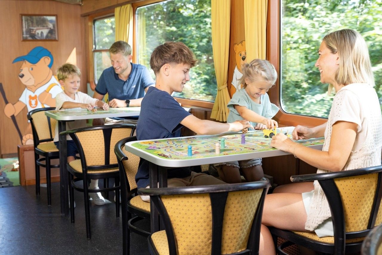 The journey is an exciting experience: there are many themed rides and a children's program all year round, and in the summer months the observation car is also on board - a breeze is guaranteed! Fun and games await little passengers in the play car. Regional snacks are available in the dining car. There is also plenty of space for bicycles on the train - ideal for a cycling trip to the Traisental or Pielachtal cycle route. During Advent, a trip on the Ötscherbär is a special experience.