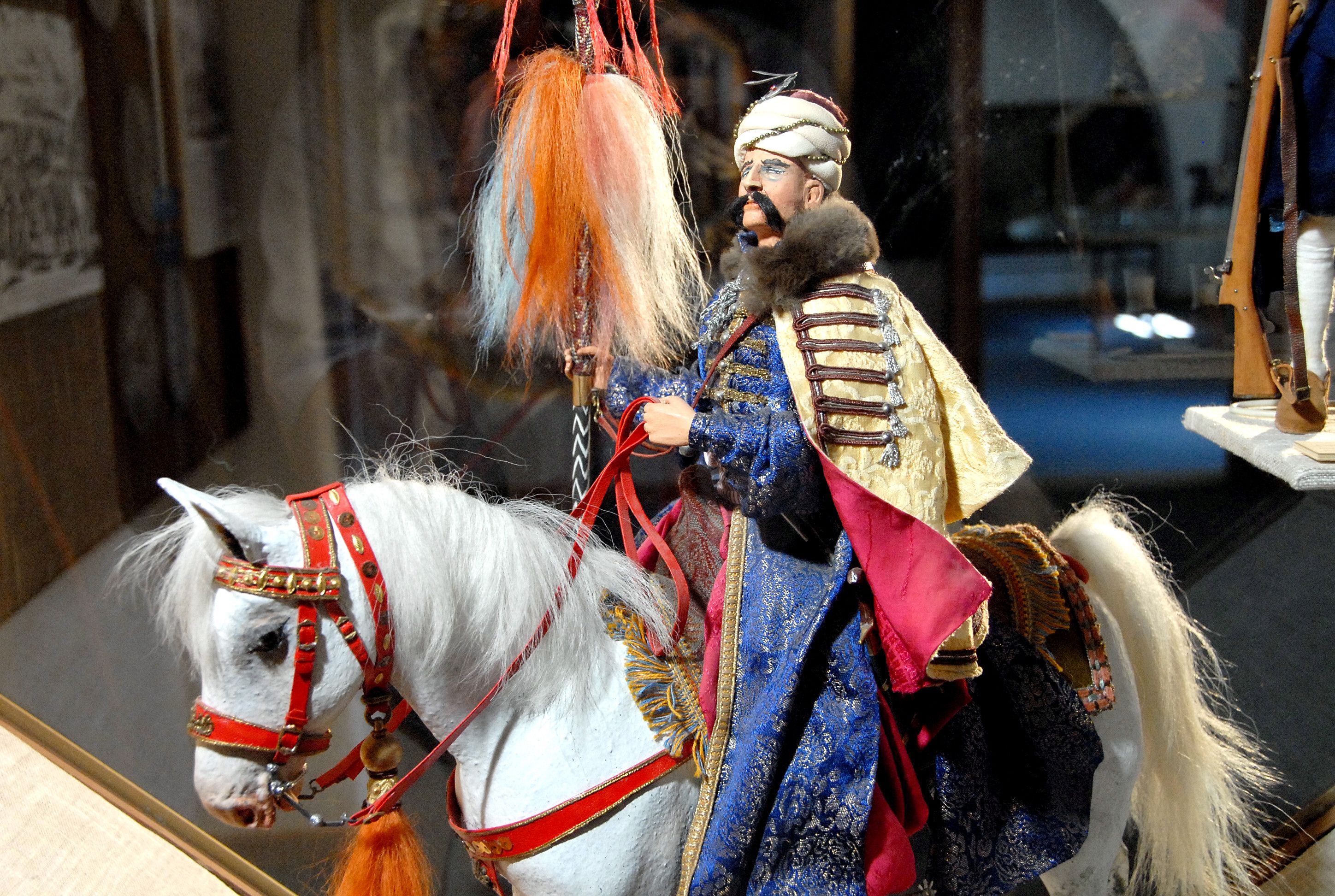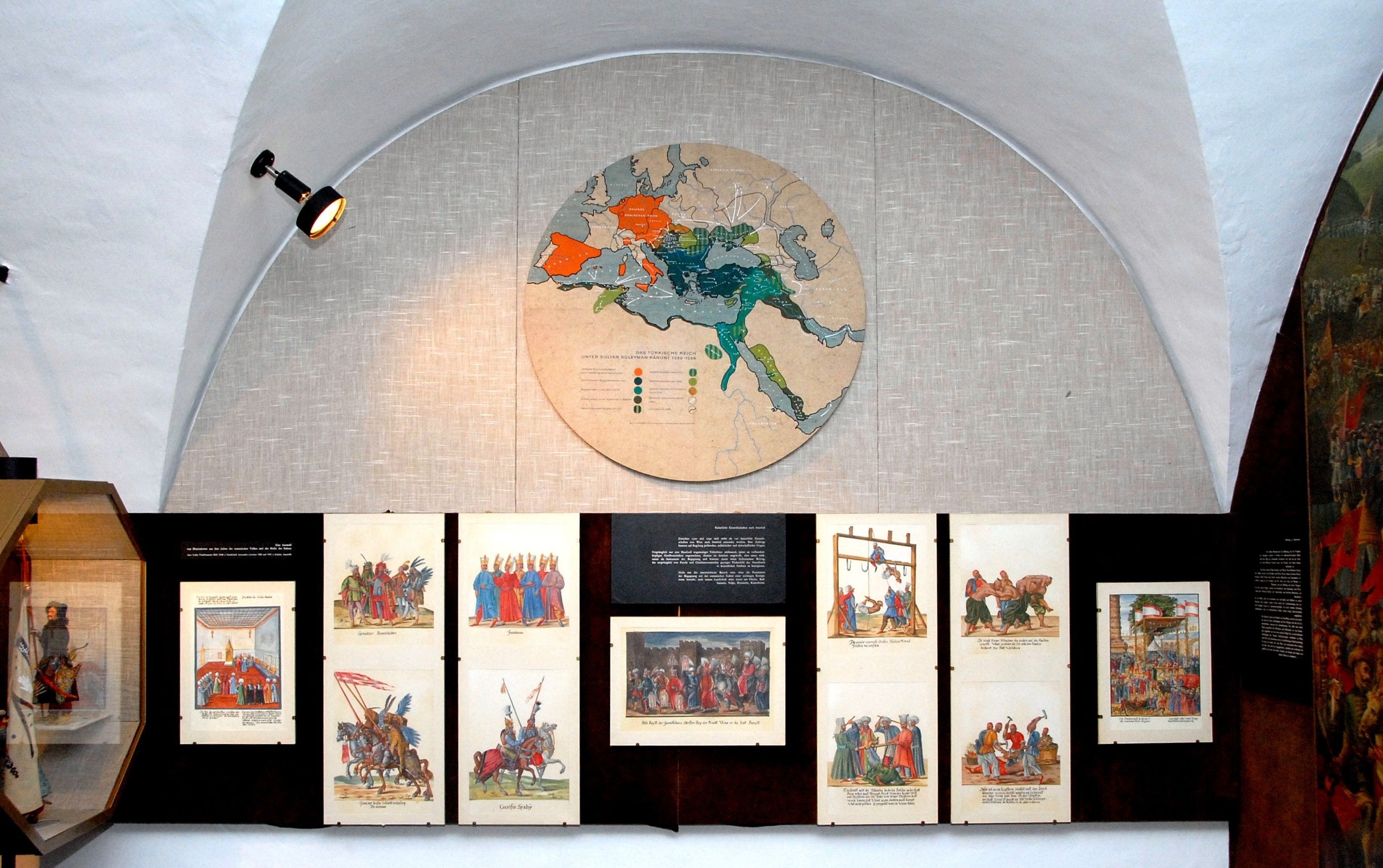 Numerous groups of originals are included in the exhibition. In addition to a wall painting from 1700, for example, a large number of medals minted on the occasion of the sieges of Vienna in 1529 and 1683. There is also a collection of gouaches produced in 1628/29 in connection with the Grand Embassy of Baron Hans Ludwig von Kuefstein. The special features of this exhibition also include models, Turkish weapons and detailed figurines of Austrian and Ottoman troops.