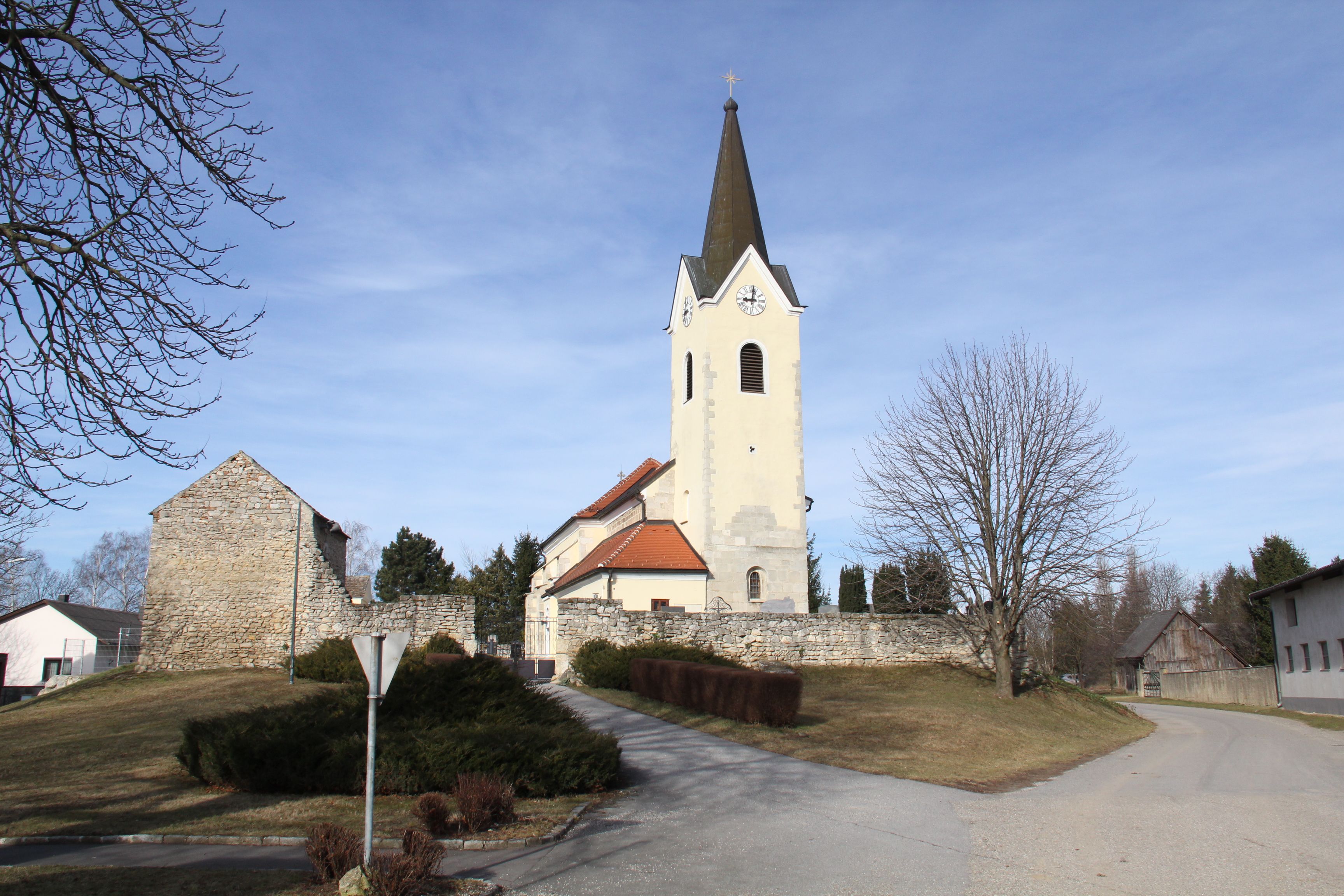 The Roman Catholic parish church of Arbesthal in the municipality of Göttlesbrunn-Arbesthal, district of Bruck an der Leitha, Lower Austria, is dedicated to St. Philip and St. James. It belongs to the deanery of Bruck an der Leitha in the vicariate of Unter dem Wienerwald in the Archdiocese of Vienna.