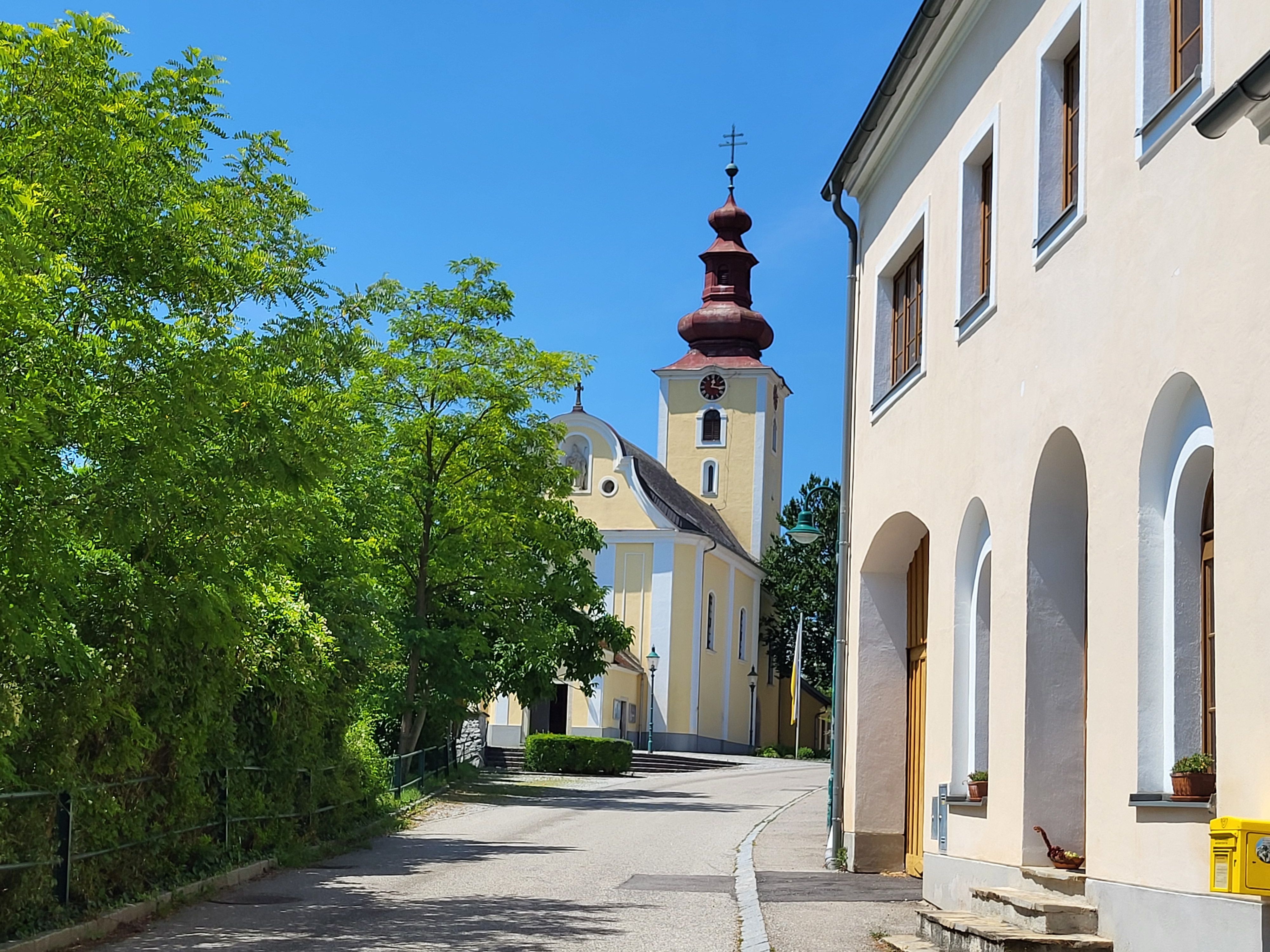 The parish church of St. Ägidius in Feuersbrunn is elevated on the south-western edge of the village and dominates the townscape. It was originally a gabled church with a west tower, which now serves as the choir.