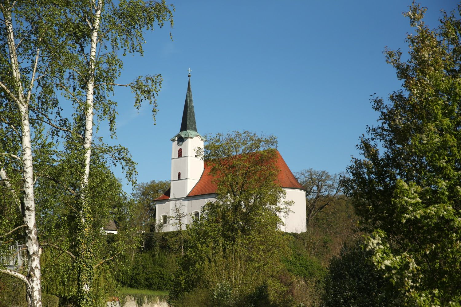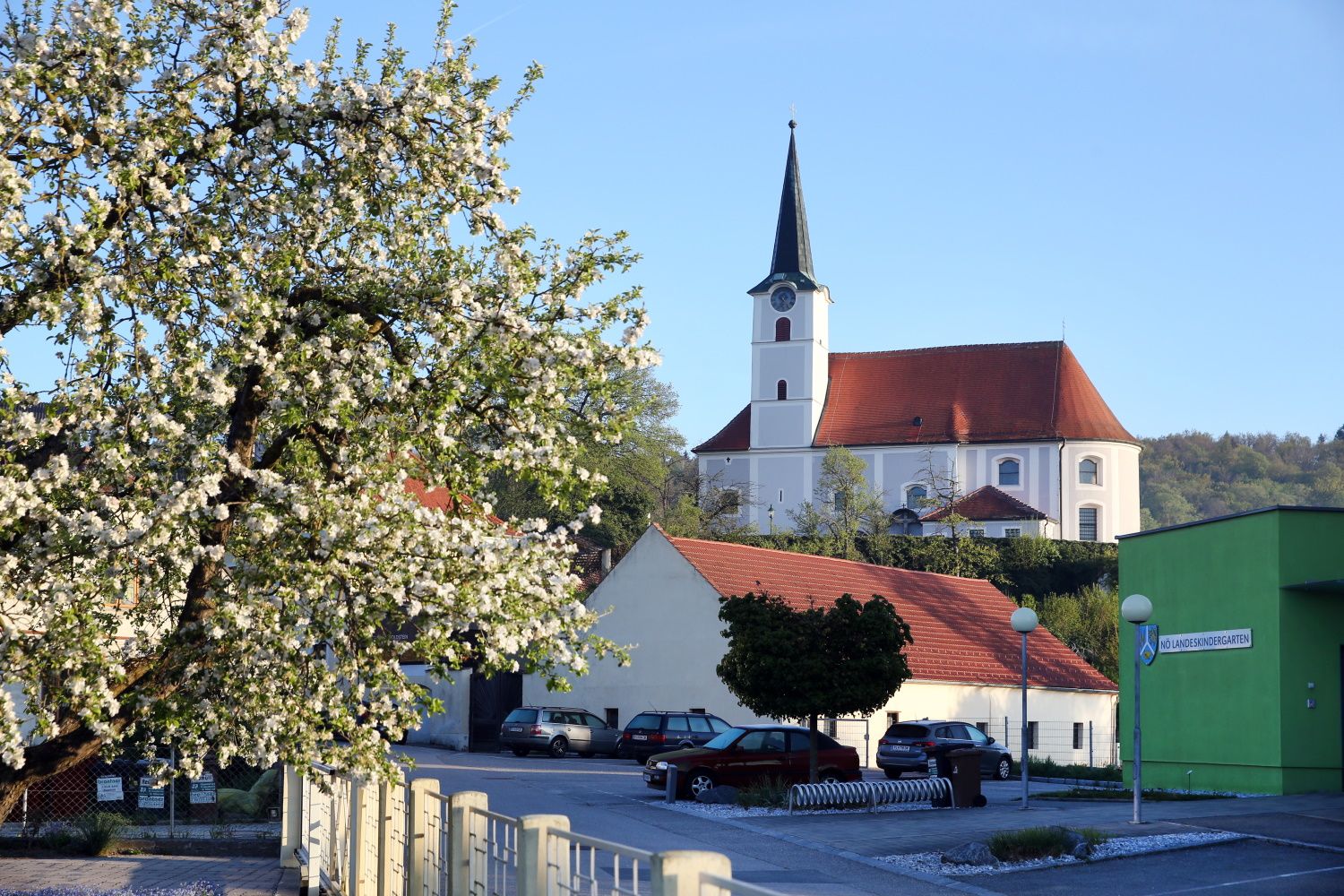 The church was first mentioned in a document in 1147 and is recognizable as a fortified church. Parts of the tower originate from a former castle complex and are therefore older than the first documentary mention. In 1367, the right of patronage was granted to the Thiersteiners and the nave was built as a Protestant church around 1580 under the Geyers - the peculiar diamond vault is a good example of the stylistic uncertainty in sacred buildings at this time. The remarkable epitaph of Bernhard Haydn zum Dorf auf Hainperg from 1589 and the accompanying terracotta funerary shield also date from the Protestant period - one of the few surviving examples of the use of this material in funerary sculpture (see Schallaburg). The presbytery owes its creation (1745) to the proceeds from the sale of the Geyer copper coffins from the church crypt - a less than reverent approach to the former patrons of the church. The high altarpiece, which depicts the church saint St. Michael, was painted by the Nazarene Theodor Petter, the Stations of the Cross by students of Kremser Schmidt. With its Romanesque-Gothic style and 37 m high tower, the church is a landmark visible from afar. There is also a spacious crypt under the parish church.