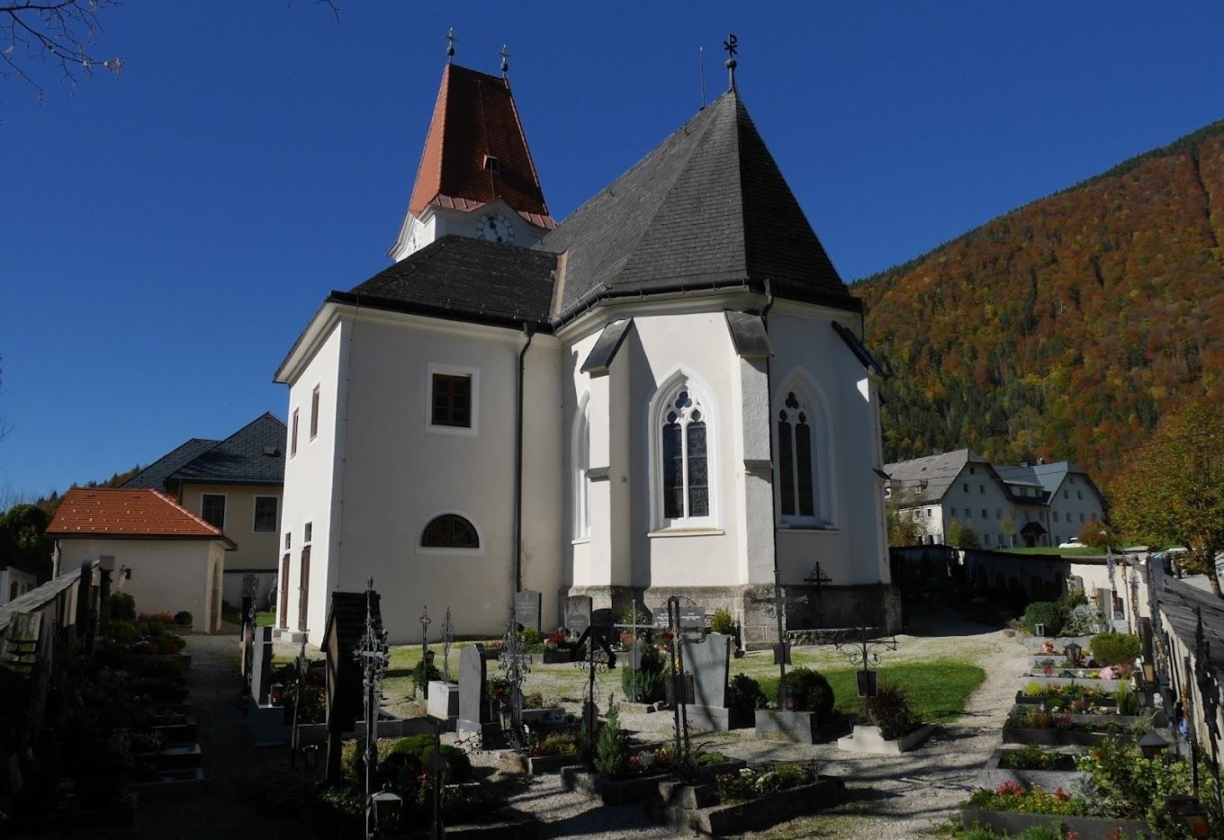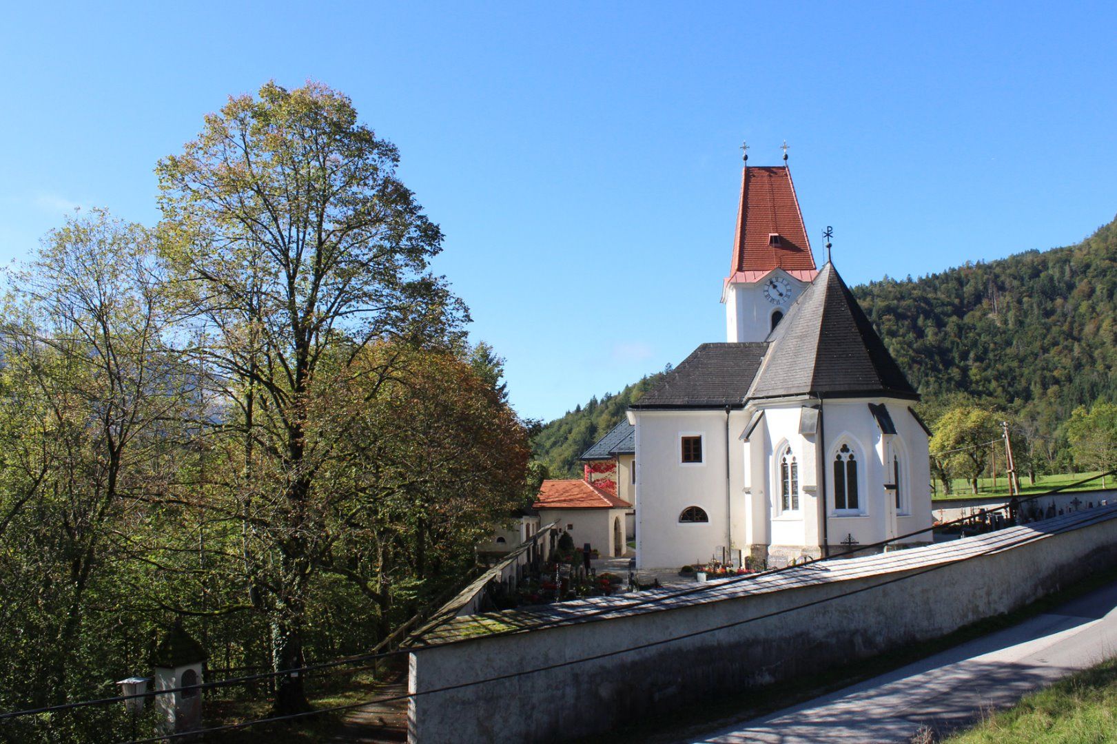 The parish church of St. George, built in 1530 in the late Gothic style, has a beautiful Gothic ribbed vault. The church, the school and the former tavern are situated on a rocky outcrop between Bauernboden and Friesling, from where you can enjoy a beautiful view of the Königsberg, the Voralpe and the Ybbstal.