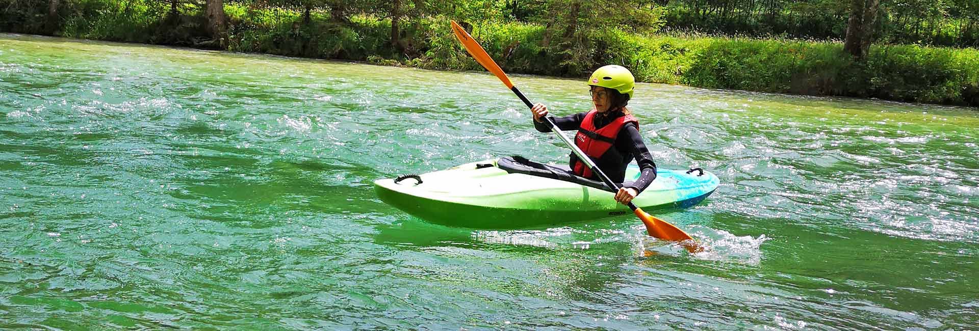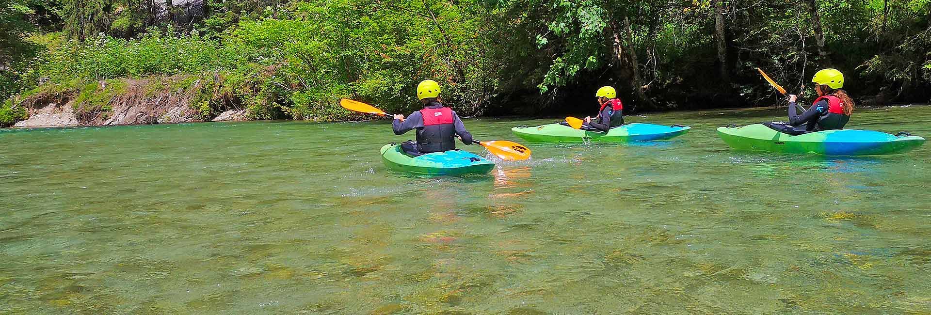 The kayak offers a sporty way to navigate a torrent. We offer courses of varying lengths. From a taster day to a course lasting several days, everything is possible. It's a great feeling to paddle through the rapids in a kayak. However, you have to approach it carefully, as the kayak can get a bit wobbly in the waves and some people have involuntarily tried the first part of the Eskimo roll.
