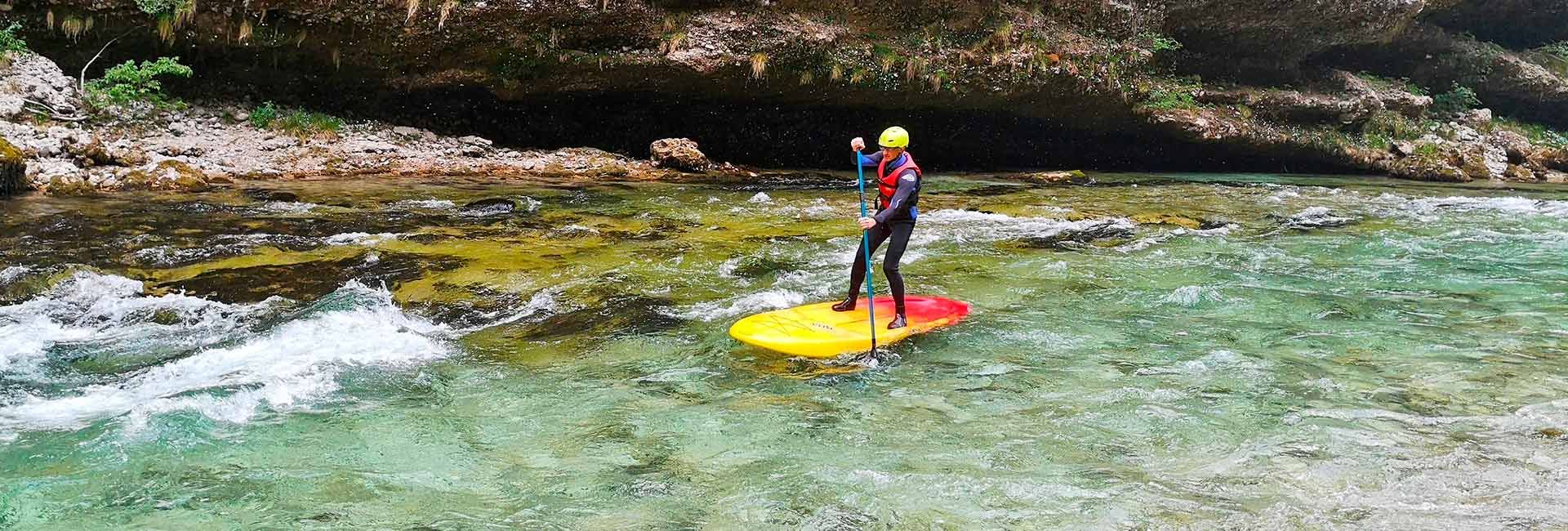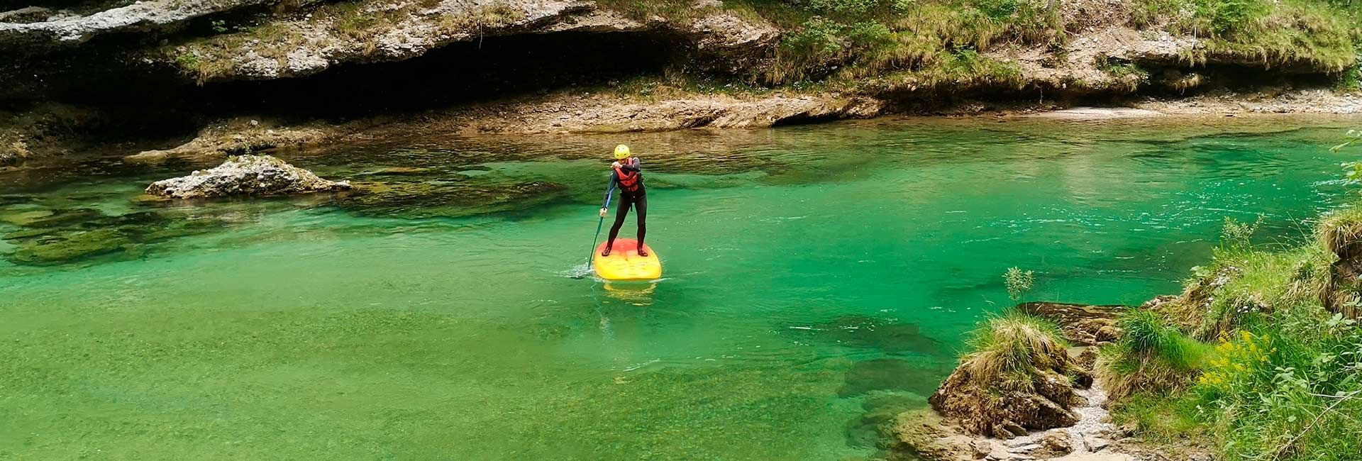 Stand up paddling (SUP) is the trend sport of recent years. It's a great feeling to glide across the water standing up on a board. A special highlight with the SUP is the Salza Gorge Tour. This extraordinary gorge route can only be explored with a boat or SUP suitable for white water. After a briefing in calm water, the approx. 5-kilometre route is navigated on easy white water. The SUP tour on this wonderful stretch of river is carried out with professional whitewater equipment. The guide shows the route through the lively rapids and it's fun to paddle the board through the small waves.Kayak course