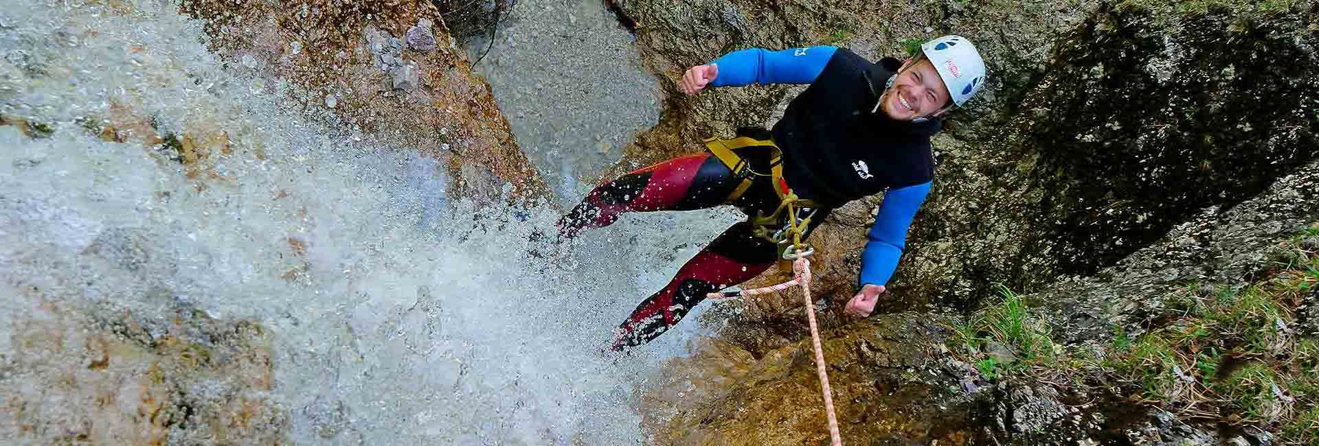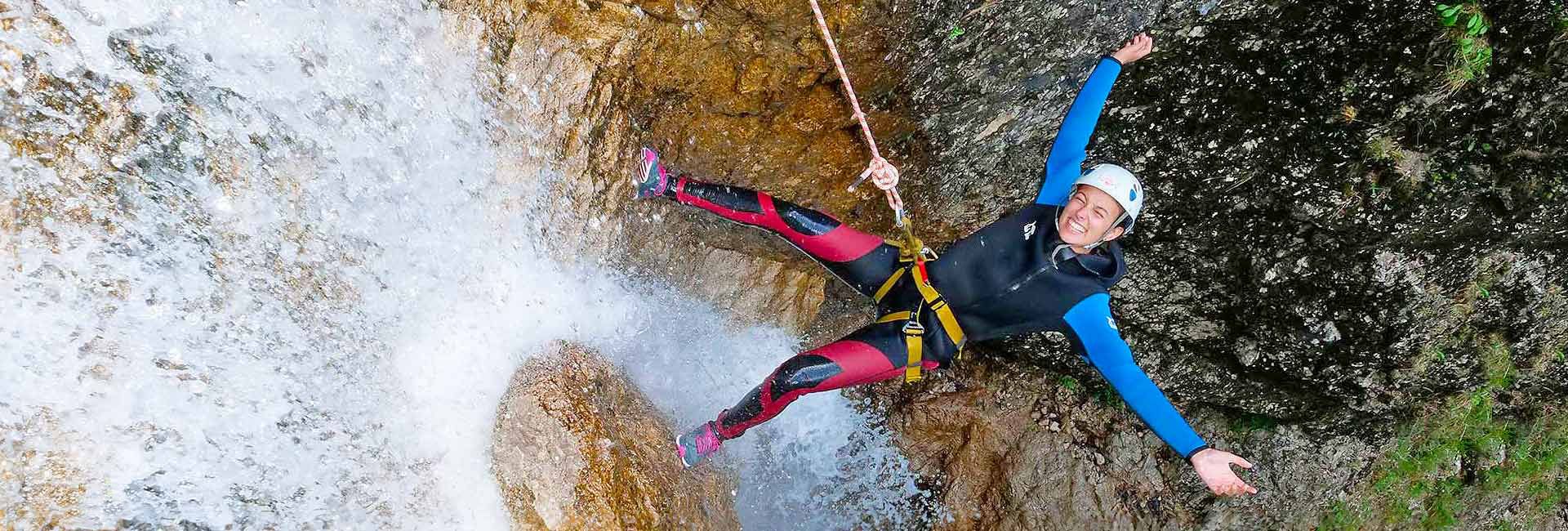 Canyoning allows you to experience fascinating gorges up close. During the adventurous hike through the torrent, you immerse yourself in an extraordinary landscape of glittering waterfalls and crystal-clear natural pools. Equipped with warm wetsuits, this is easily possible for anyone who can move and swim in pathless terrain. The guide ensures safety and lets the participants descend with the rope over splashing waterfalls. Natural slides and jumps into water poles add variety to the canyoning tour. The landscape is breathtaking and can only be experienced in this form when canyoning.High ropes course