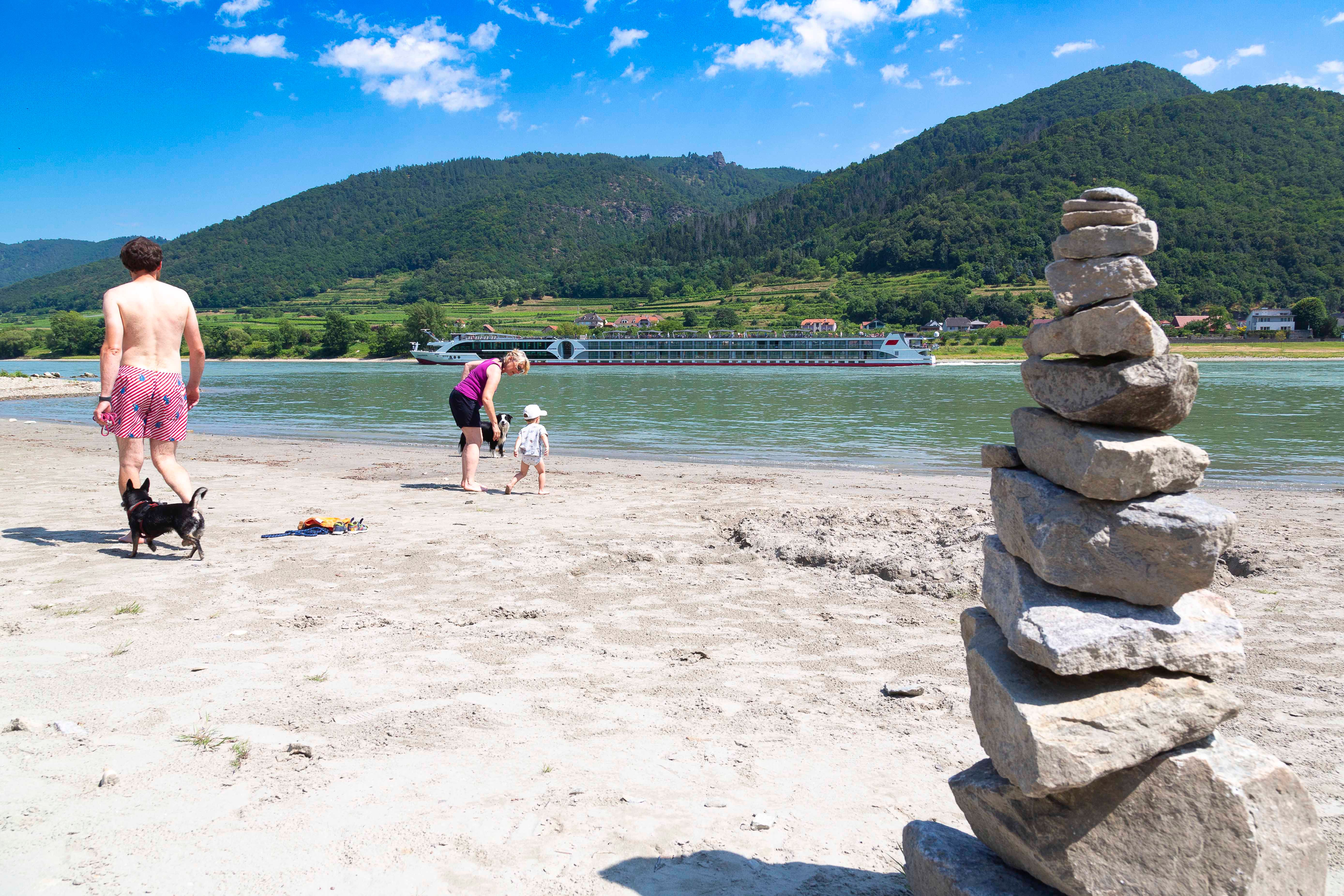 Below the Hinterhaus ruins in the immediate vicinity of the B3 main road, a beautiful sandy gravel beach opens up at low tide. A few steps lead down to this section of the Danube. This spot is ideal for a refreshing dip in the Danube water or a short vacation, and is also suitable for dogs.