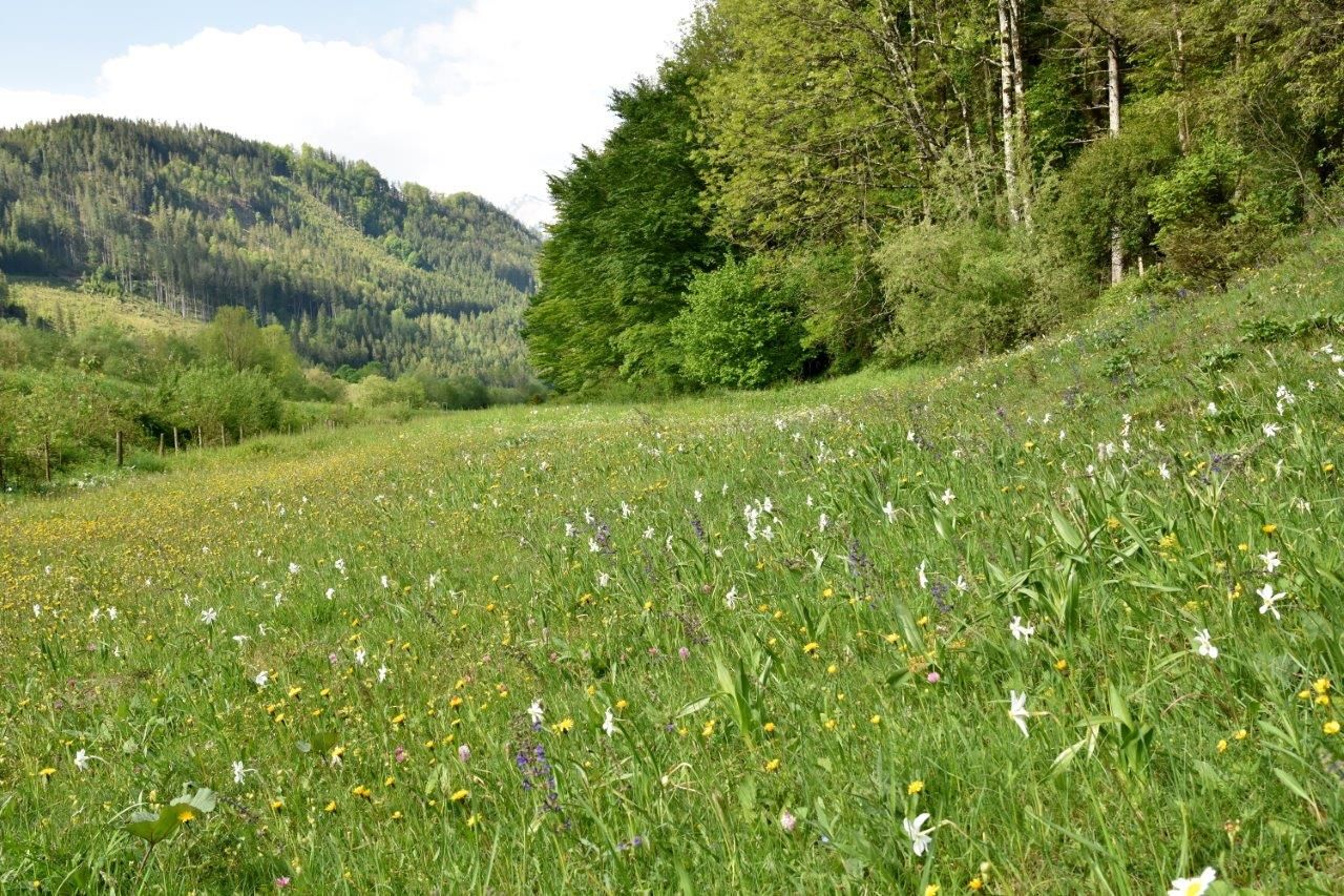 In the area around Fahrnlehen along the Ybbstal cycle path, there are always species-rich, very aesthetically pleasing meadows and pastures with sometimes dense stands of daffodils.