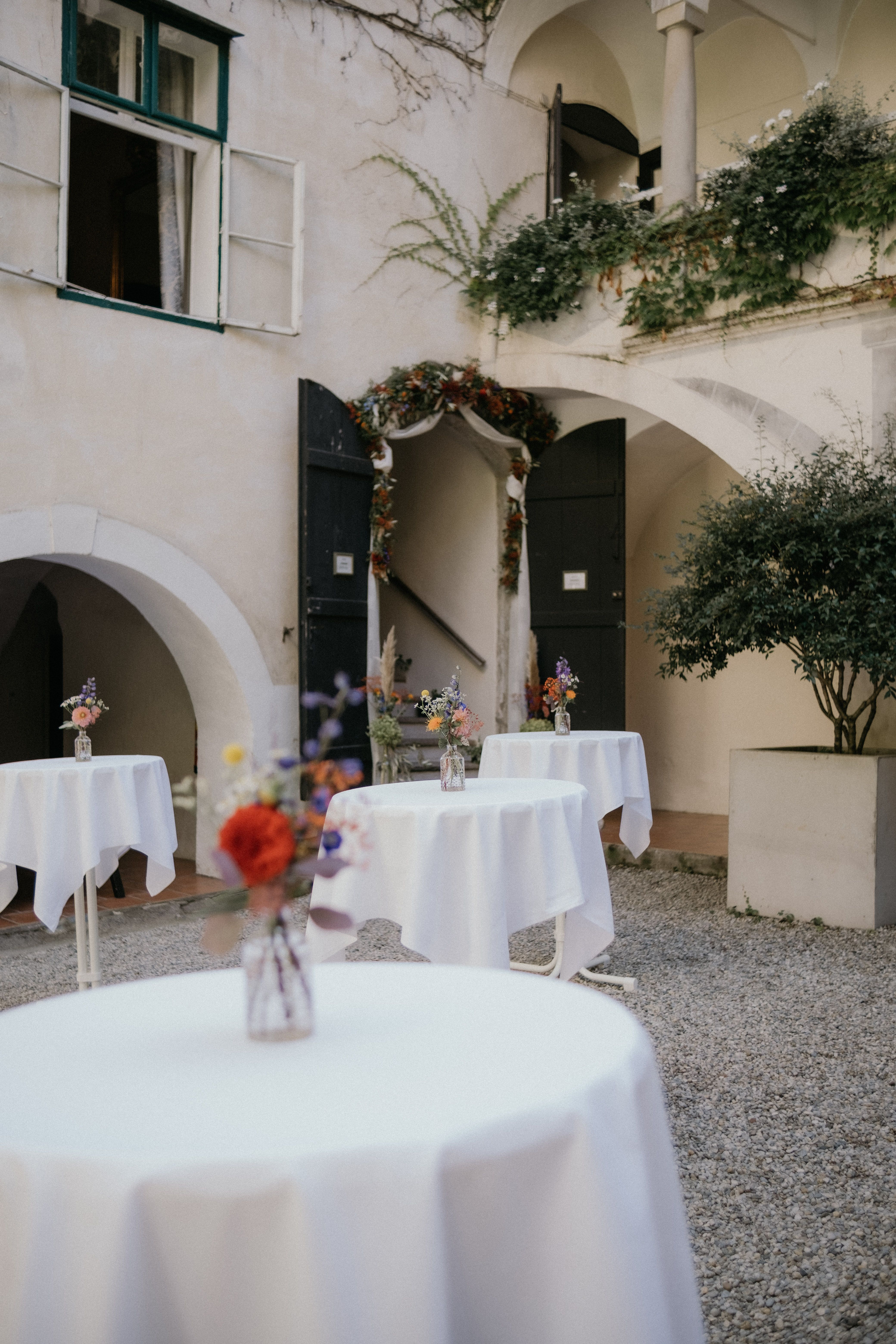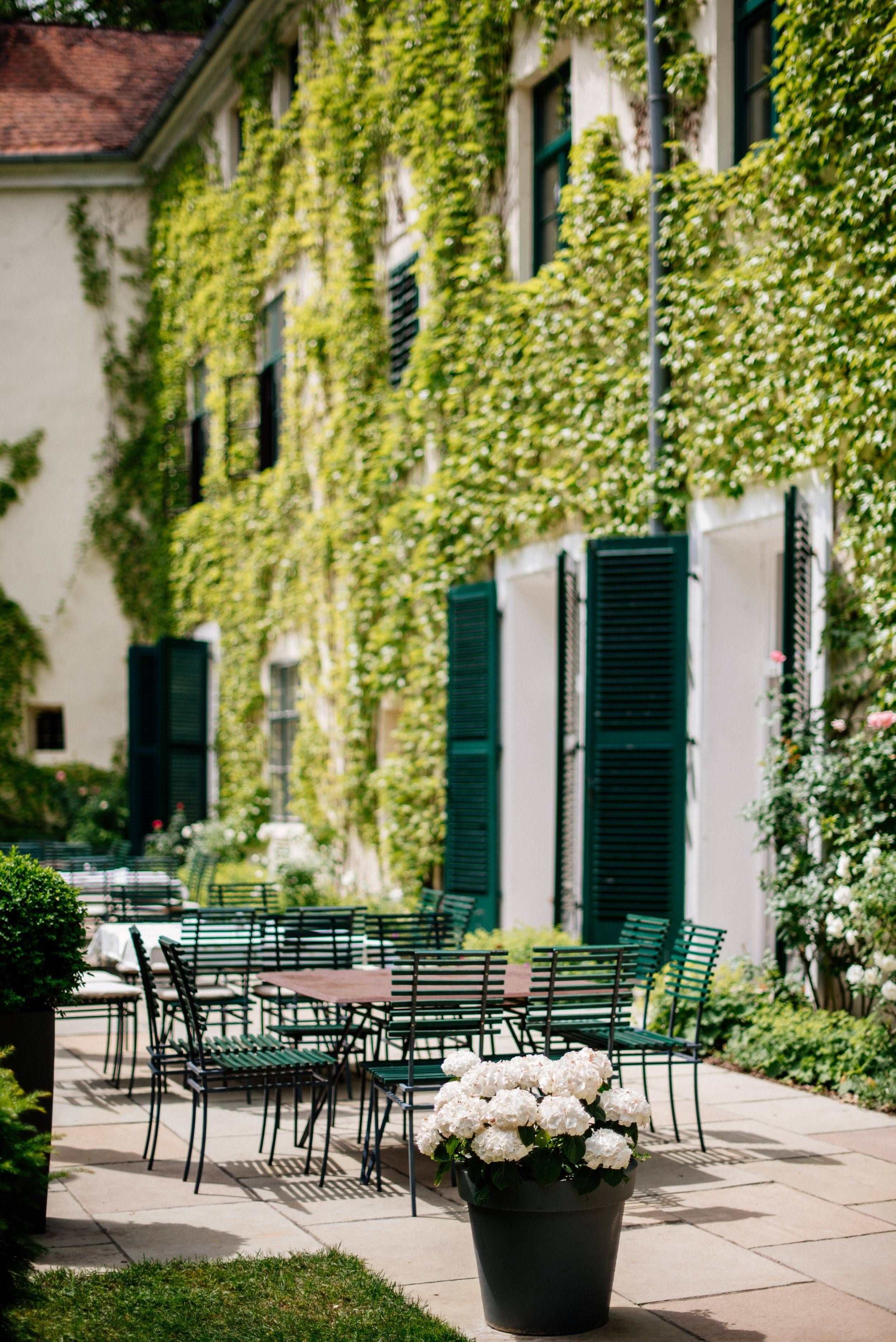 The elegant public rooms, the large salon and the red salon are much as they were when this was a private house; large and luxuriously comfortable. There is also a bar, dining room, garden terraces and cellars around the courtyard.
