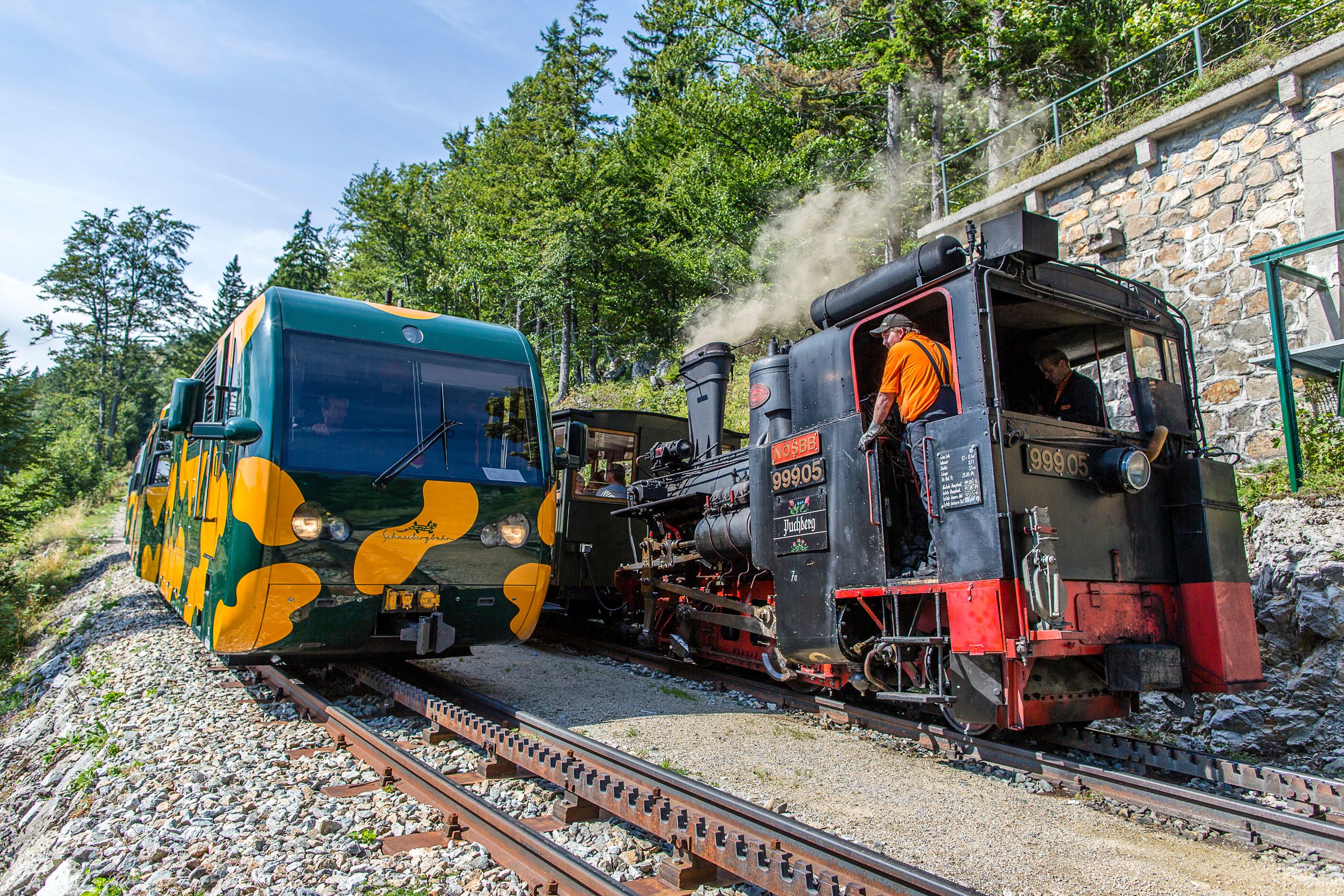 As in the days of the emperor, you can still climb the Schneeberg today. However, today guests can choose between the 125-year-old nostalgic steam train (90-minute journey time) and the Salamander railcar (40 minutes), which has been in service since 1999. The train starts at the station in Puchberg, which is easily accessible thanks to numerous ÖBB connections. During the journey, you can enjoy the breathtaking scenery, which changes a little with every metre of altitude, overcoming 1,200 meters of altitude and reaching the highest railroad station in Austria at 1,795 meters.