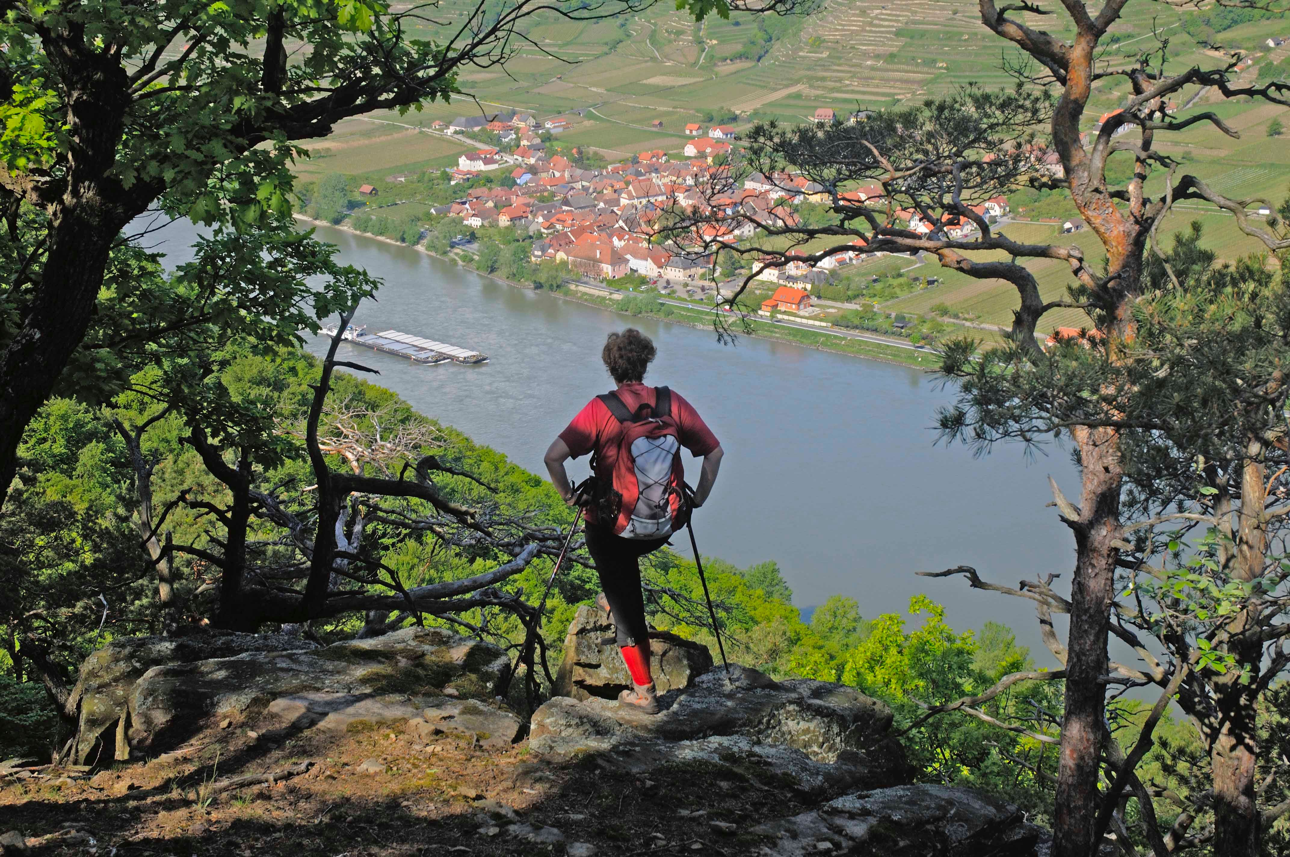 Advanced (or additionally secured) hikers can also use the miniature via ferrata on the Hirschwand (620 m): around half an hour's walk from the Seekopf summit, you can climb this 15-metre-high rock face - via two secured via ferrata routes. From here, you can hike down the World Heritage trail to St. Lorenz. Tip: In addition to a well-deserved visit to a Wachau wine tavern, a visit to the old church of St. Lorenz with its Romanesque nave is also worthwhile.