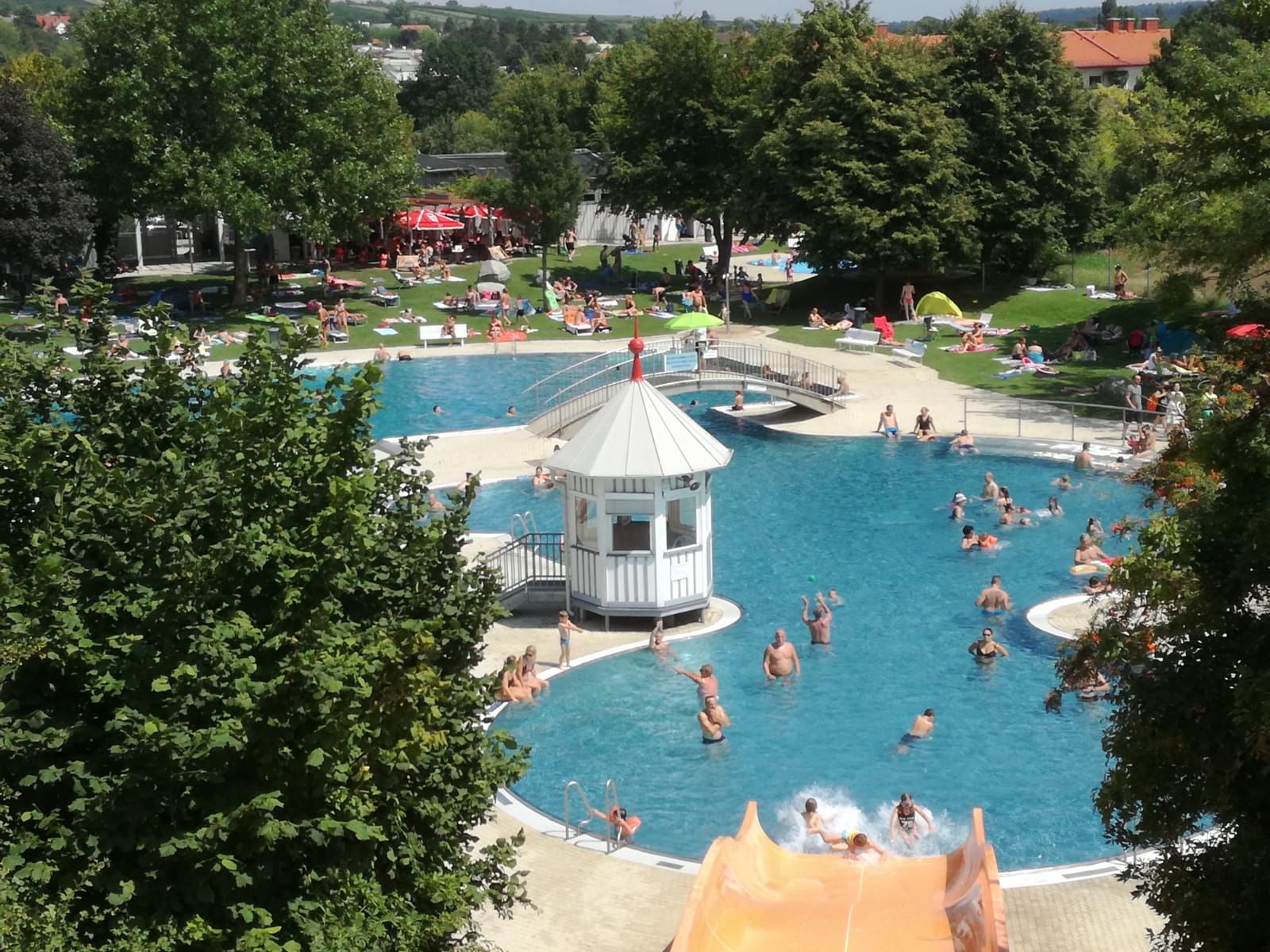 The summer pool in Wolkersdorf, which is located on the outskirts of the town, has a spacious sunbathing and lawn area as well as the longest wide slide in Austria, which will make water-loving children's eyes light up. For the little ones, there is a separate toddler area with a small slide. For sports enthusiasts, the beach volleyball court, soccer pitch and table tennis table ensure a varied stay. Bookworms can browse through the book rental right on the premises and choose suitable reading material while relaxing on a lounger or sunbathing. The buffet offers a variety of snacks to satisfy your hunger in between. The barrier-free summer pool also welcomes wheelchair users.