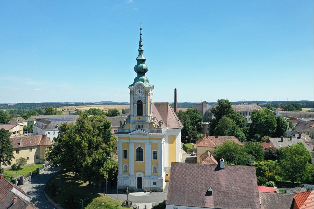 Around 1300, when Siegharts had already become a sizeable village with over 20 houses, the "Baptistery of St. John" was built here under Weichhart von Siegharts and his brother-in-law Pastor Weigand von Raabs. This church survived all political upheavals in the Middle Ages and early modern times, was even spared during the Thirty Years' War and remained in existence until the time of the lord of the manor, Count Johannes Christoph Ferdinand von Mallenthein. He had the 400-year-old church demolished in 1720 and the "St. John's Church" was built in its place between 1723 and 1727, which was elevated to parish church status in 1783. The plans for the church were drawn up by Donato Felice d'Allio, who also drew the plans for Stift Klosterneuburg. In 1727, Count Mallenthein became impoverished, partly due to excessive debt and partly due to difficulties in selling the textiles he produced.
