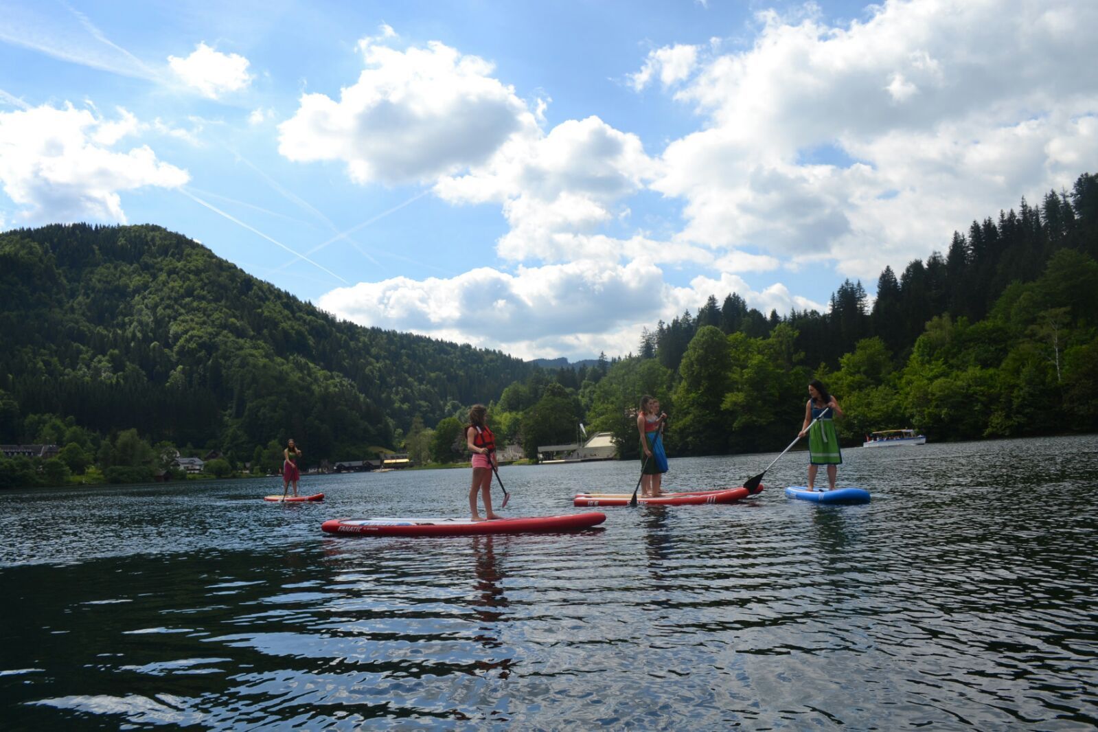 Crystal-clear water under your feet, the imposing Mostviertel mountain area in view - stand-up paddling on Lake Lunz is a real pleasure.