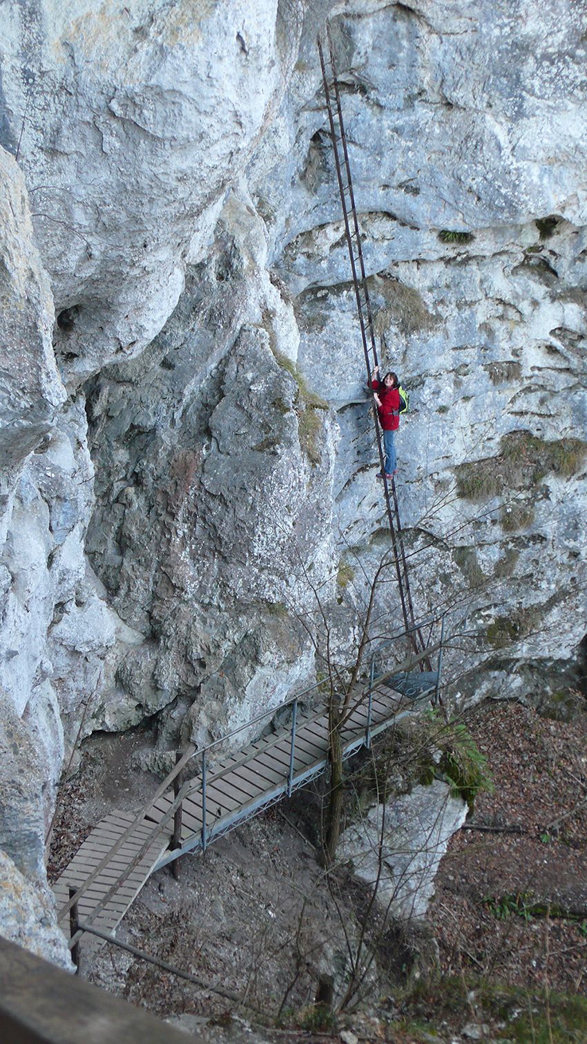 After the Steinwandklamm gorge, you come to the Türkenloch, a cave that you hike through, before continuing on to Gasthaus-Jagasitz, at 706 m above sea level, with views of the Schneeberg. It is dark in the Türkenloch, so good shoes and a lamp are helpful here. For the brave and those with a head for heights, the Rudolf Decker Steig is an alternative climbing route. This leads over a 15-metre ladder and through the "Wildschützenloch". Inexperienced climbers and children should use a safety rope.