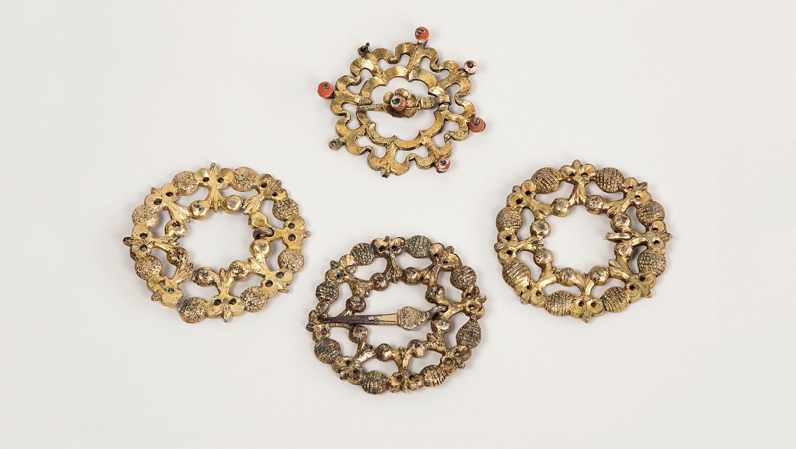 The first owners of the individual objects used the valuable components of clothing and tableware as part of their social identity. A coat of arms medallion on a cup refers to the Vierdung family of Wiener Neustadt aldermen. Traces of dismantling on some objects suggest that a goldsmith acted as an intermediate owner who collected scrap metal for further use. The last owner was probably a precious metal dealer. By burying the objects in front of the tollbooth outside the city, he may have wanted to circumvent the strict regulations on trading in broken silver. It is not known why this last owner first hid the treasure and then did not dig it up again. But as there is no known historical event in Wiener Neustadt from the 14th and early 15th centuries that could have led to such behavior, the owner's personal problems were probably the decisive factor