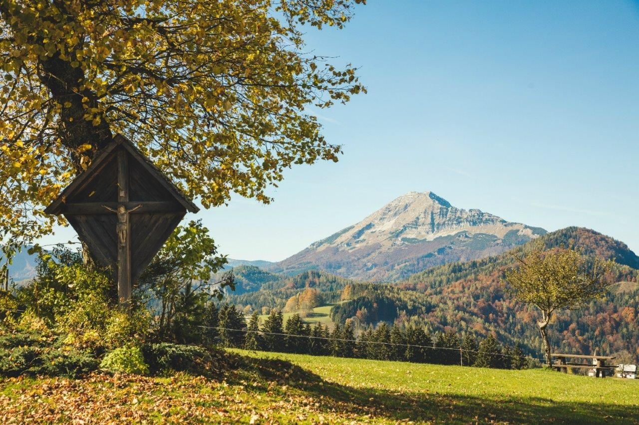 On the path between Annaberg and Josefsberg, a hill rises gently to the left, named after the husband of St. Anne and the father of Mary. The 829 m high elevation used to be called "an der hohlen Tanne" until the Bohemian Count Johann Joachim Slavata had the little church built in 1679, the year of the plague, in honor of his patron saint, St. Joachim, thus creating an important place of worship for pilgrims on their way to and from Mariazell. In 1684, Count Slavata had the precious baroque furnishings built - above all the high altar, the greatest artistic treasure of the parish of Annaberg. From Joachimsberg, you can enjoy a magnificent view of the majestic Ötscher and the mountain landscape of the Alpine foothills.