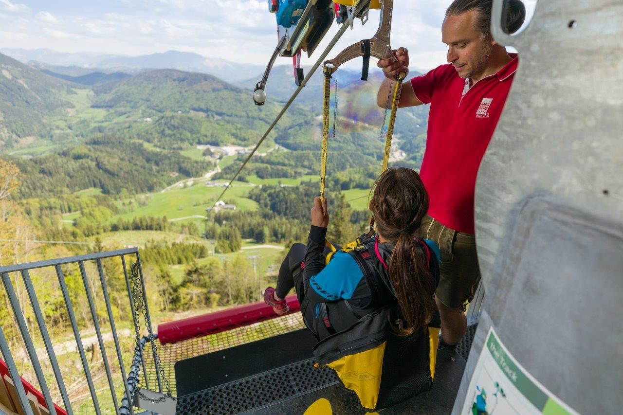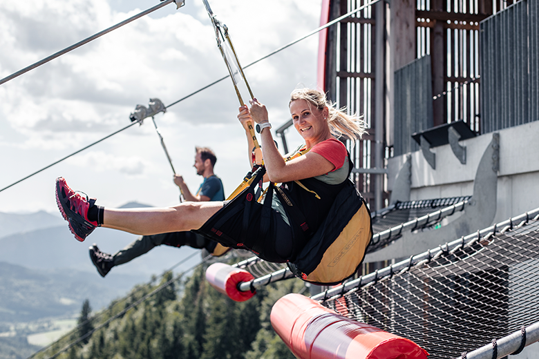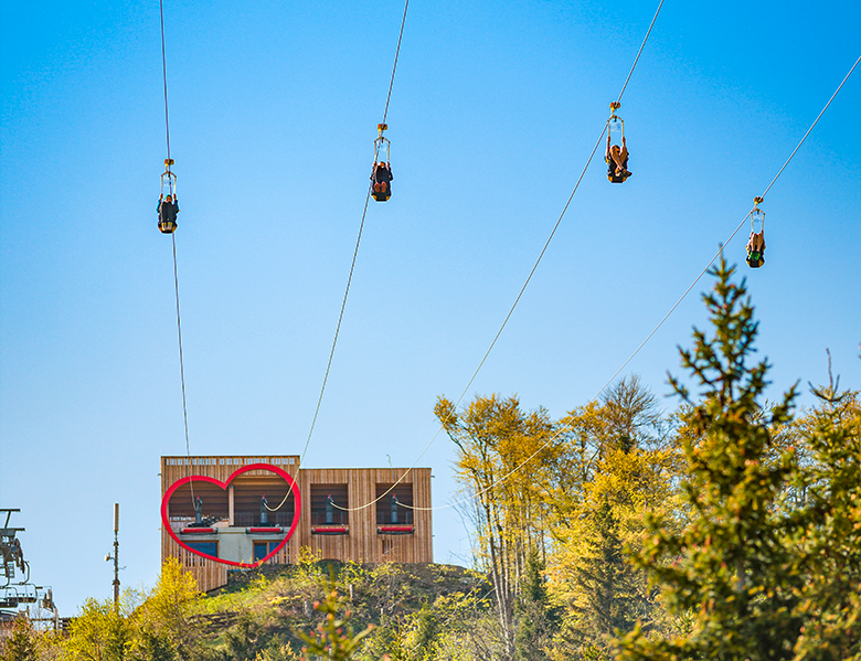 At the ZIPLINE ANNABERG, adventure seekers, whether young or old, get their money's worth. The Zipline Annaberg is the first facility of its kind in Lower Austria and stands for thrills and adrenaline combined with maximum safety. On 4 ropes stretched side by side, you fly down the mountain parallel to the chair lift, overcoming 386 meters in altitude. Fun for up to 4 passengers at the same time!