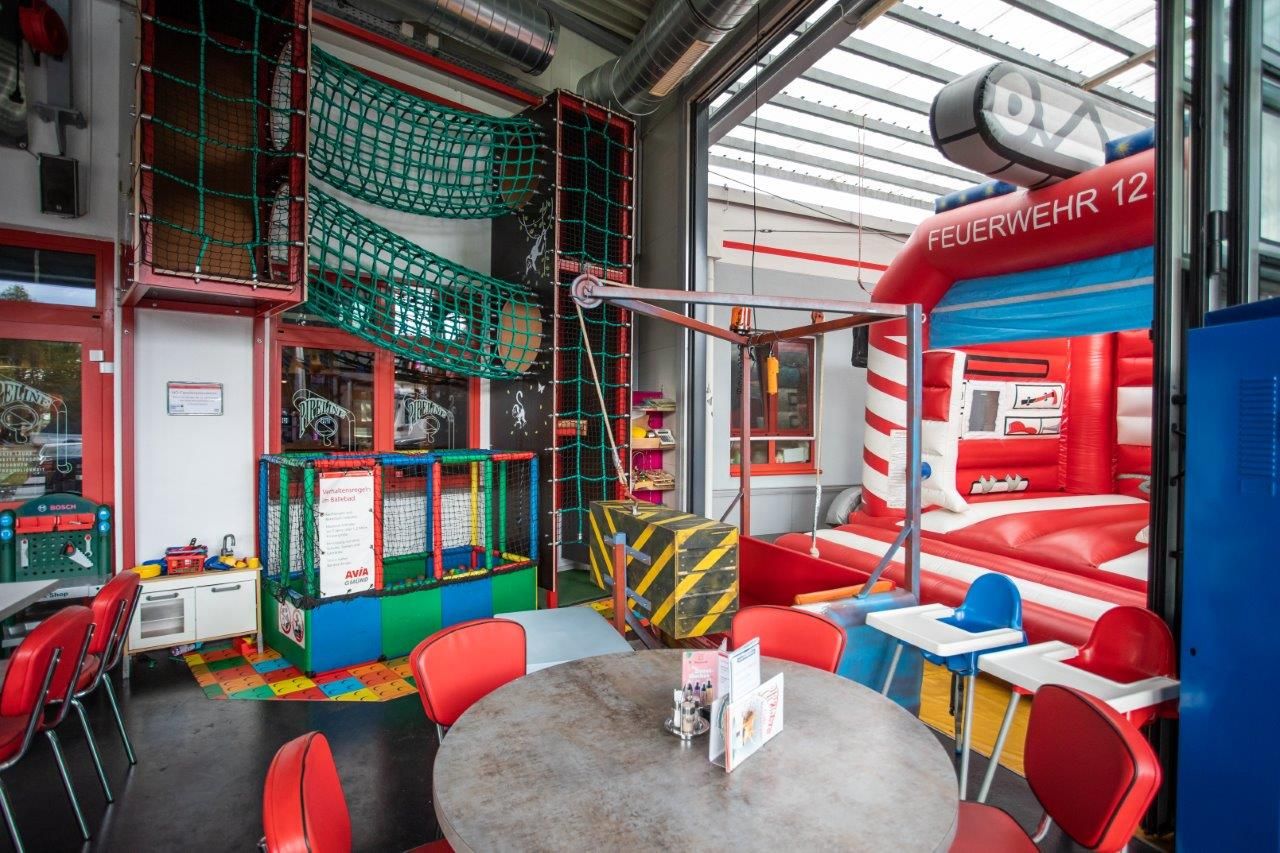 The little ones can have a great time at Café Restaurant PIPELINE. Our robot "Pipelino" makes children's hearts beat faster. With its fun indoor and outdoor children's play area, Café Restaurant PIPELINE at AVIA Station Gmünd Mitte offers the ideal conditions for a perfect stay for adults and children alike. While the grown-ups can chat comfortably and undisturbed, the children can romp around between the bouncy castle and playground. Computers, coloring pages, games and much more ensure fun, games and excitement.