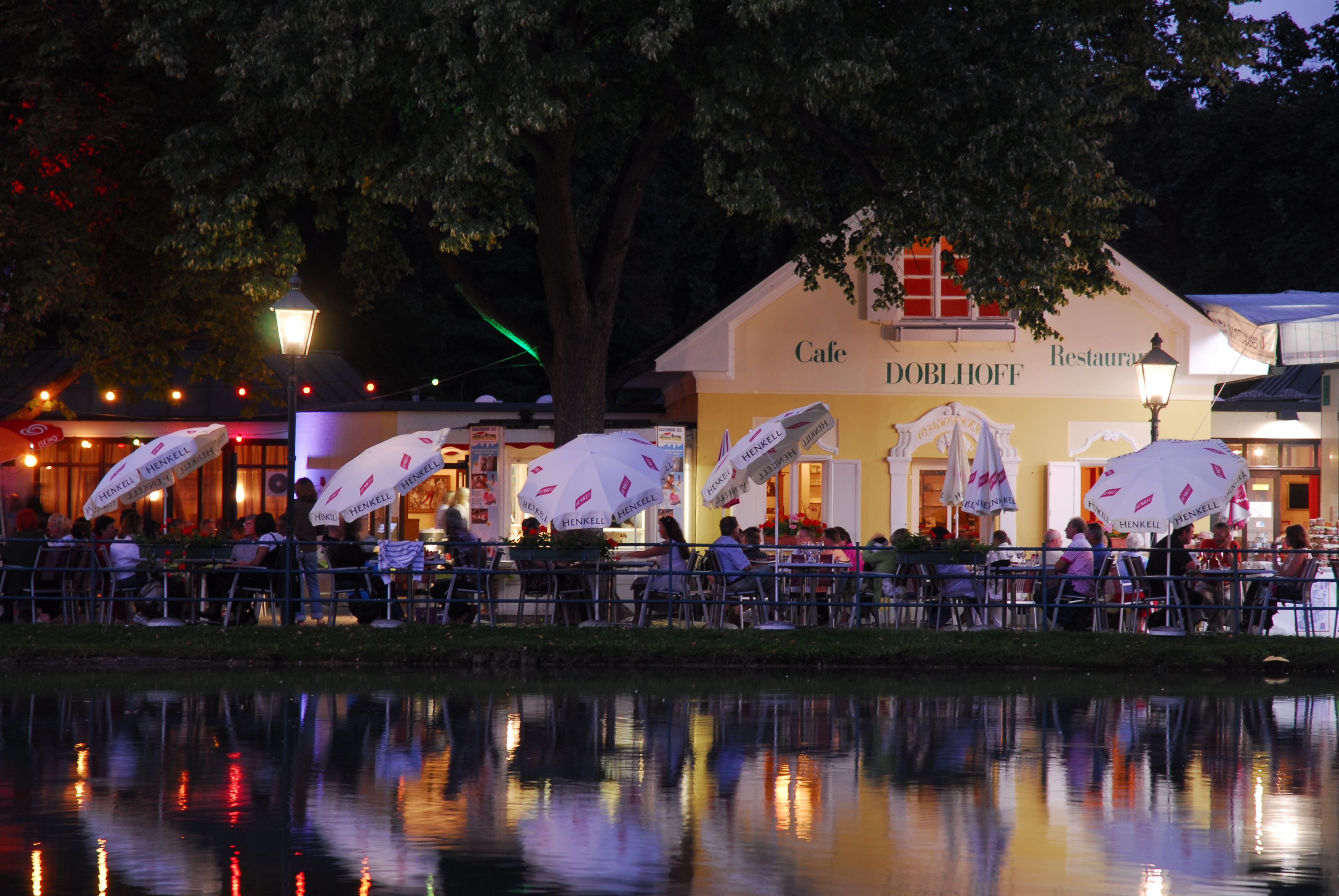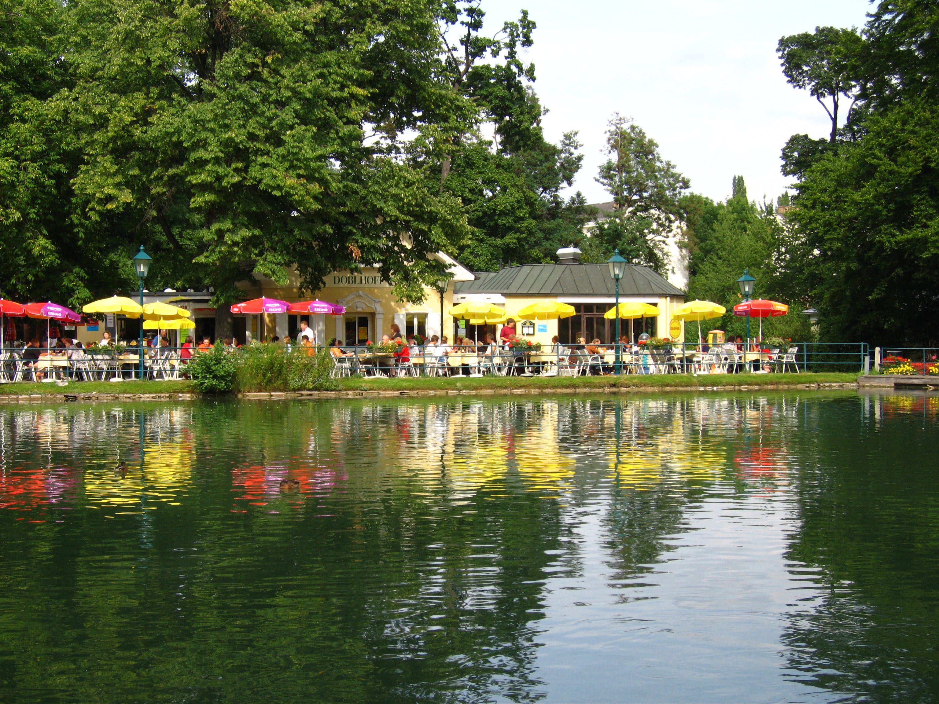 The Café Restaurant Doblhoff is located directly by the pond and has its own charm at any time of year, especially when the roses are in bloom, when a light breeze carries the scent of roses from the nearby rosarium.