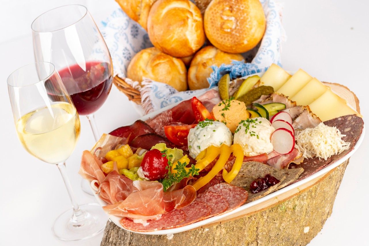 Traditional Heurigen dishes such as home-made roast pork, smoked meat, black pudding, cheese and pickled vegetables are served. The offer is complemented by creative specialties such as the Wachauer Laberl with roast pork filling, the Lissyburger with wild boar ham or fine homemade desserts. This is complemented by the carefully selected wine collection of the house, which reflects the character of the region and rounds off the culinary experience.