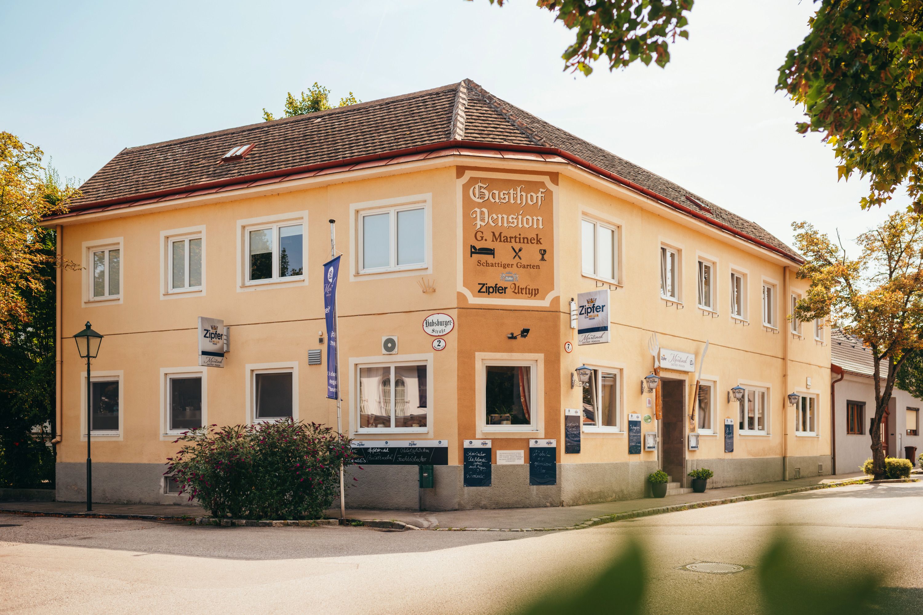 The Gasthof & Hotel Martinek, a family-run business, is situated in a quiet location near the center of Baden. Just a two-minute walk from Baden's lido and a 15-minute walk from the Römertherme thermal baths, the inn offers an ideal location for those seeking relaxation. The casino and public transport to Vienna are also just a few minutes away. The atmosphere of the inn is characterized by traditional hospitality, which is reflected in the cosy rooms and inviting restaurant.