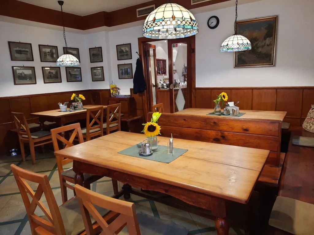 Weekday lunch menus change daily - with soup, main course and vegetarian alternatives (e.g. penne with gorgonzola cream sauce, zucchini and potato gröstl or curd cheese pancakes with roasted apricots). The kitchen places great emphasis on home cooking and regional ingredients, and vegetarian and vegan dishes are also available.