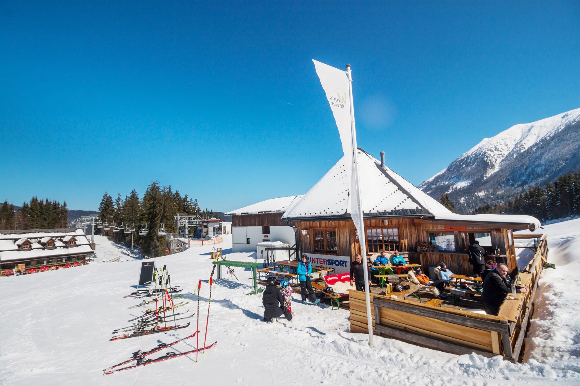 The Hubertus Huts is a rustic, wooden ski hut on the Eibenkogel (955m) in Lackenhof am Ötscher.