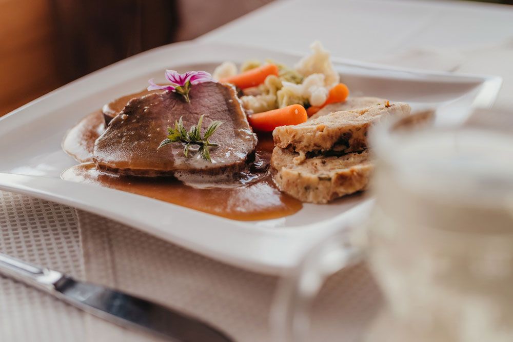 Sometimes you need a change of perspective to improve your quality of life: At the Panoramagasthof Mitterböck, guests are offered a cross-border view from the inn's garden. On a clear day, the view sweeps across the Cider, Mühlviertel and Waldviertel regions. Deep-rooted chestnut trees cast a shadow. On the 560-metre-high hill in St. Peter in der Au, guests can take a break from everyday life. All that's missing is high-quality inn cuisine. Et voilà: The roast beef from Mostviertel cattle with cider sauce, napkin dumplings and vegetables skillfully highlights the advantages of the region. The friendly service makes it taste even better. The grilled pork medallions "Mostviertler style" are tender and full of flavor. The wine and cider menu is extensive.