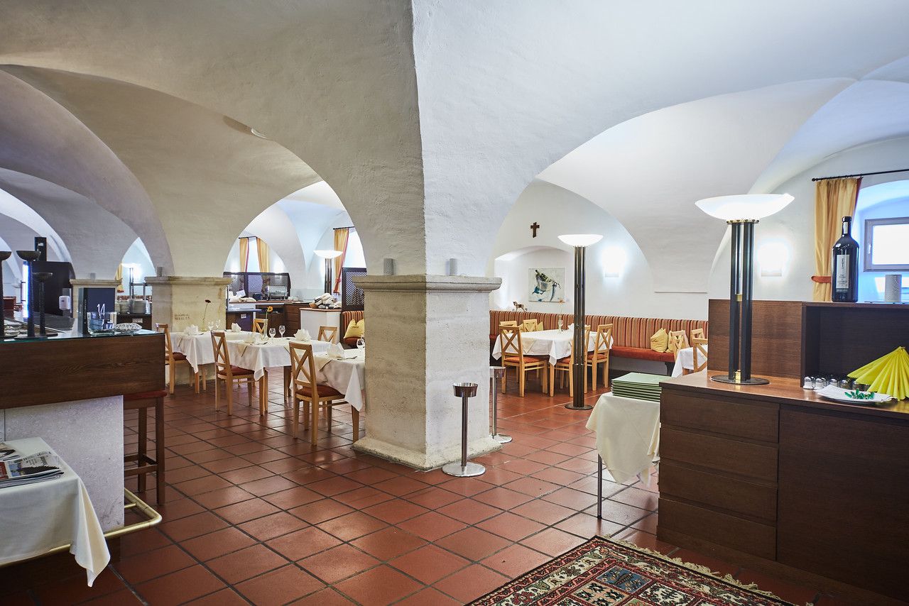 The historic ambience in the Schüttkasten restaurant makes the dining experience perfect, as the monastery's cross-vaulted ceiling makes for a particularly cozy get-together.