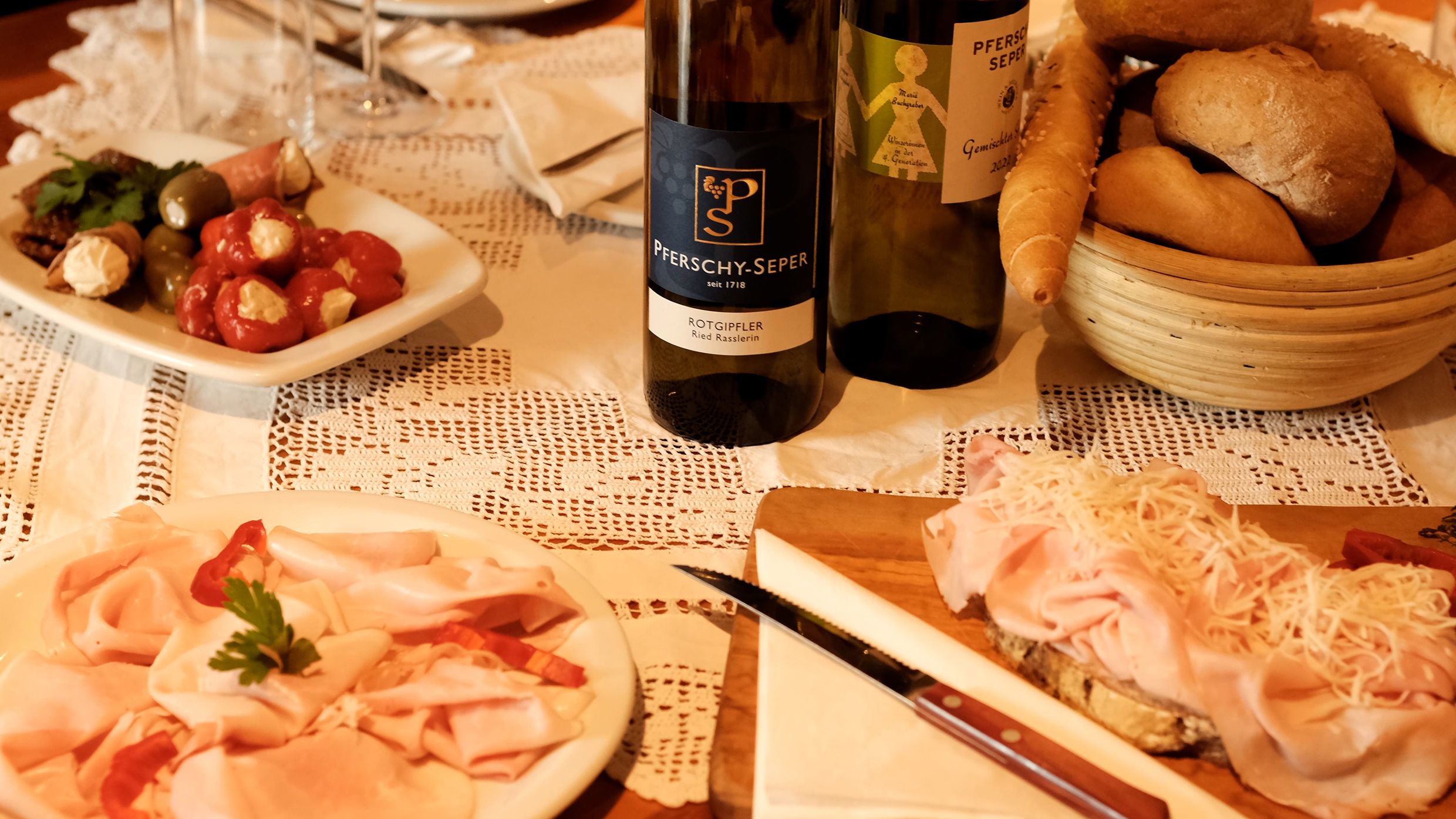 Old traditions are also preserved at the wine tavern, e.g. the sumptuous wine tavern buffet, but attempts are also made to meet modern requirements, such as the conscious selection of regional suppliers or the organization of cultural events. One of the most pleasant aspects of the innovations is that children also look forward to a visit to the Heurigen, as there is a large play area, swings, slide, climbing frame and petting zoo waiting for them.