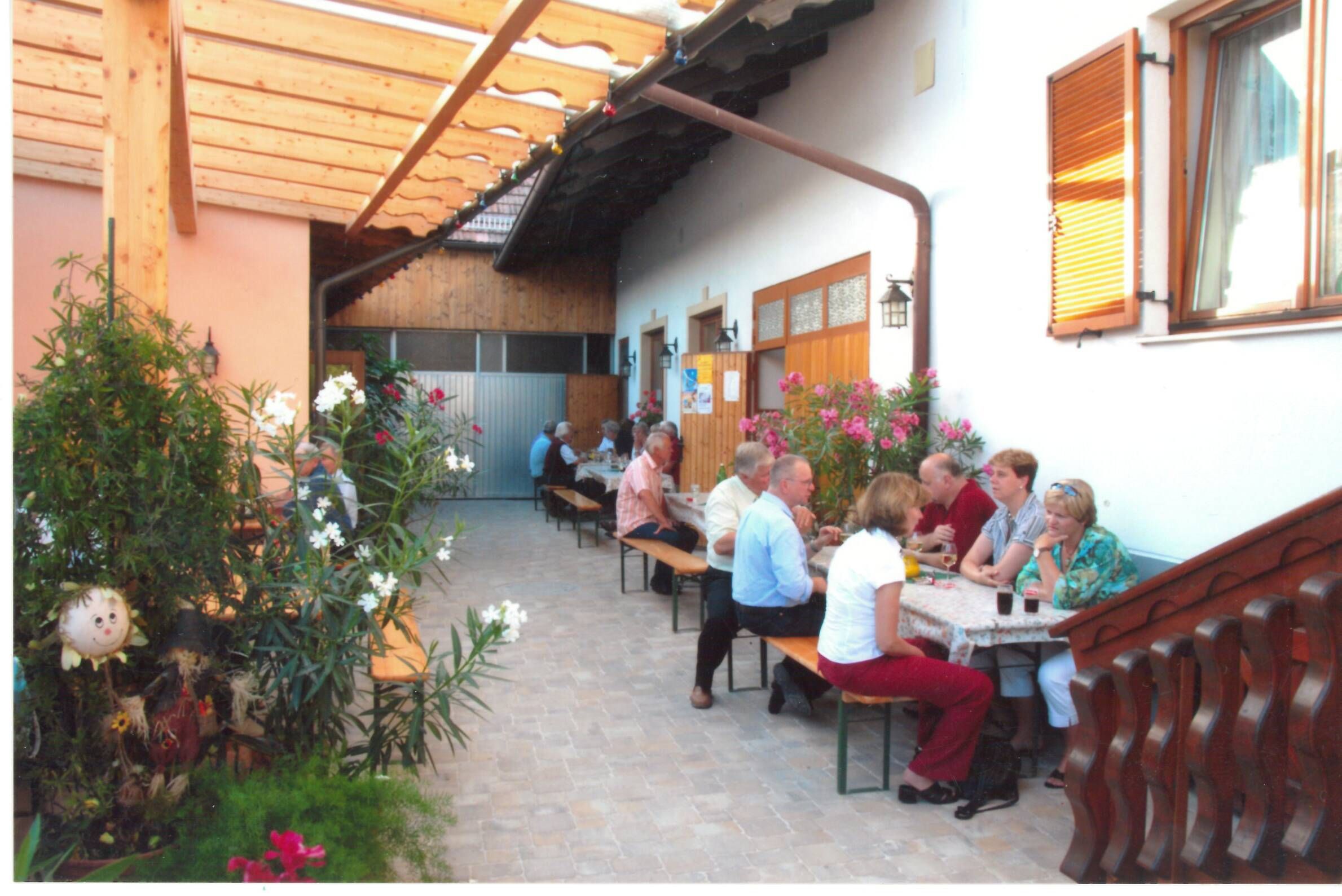 The Hinterleitner family has been running their Buschenschank (typical tavern) in the middle of St. Andrä for more than 70 years. It is just as popular with locals as it is with walkers, hikers and cyclists - after all, it is less than 500 meters from the cycle path on the banks of the Traisen. One of the restaurant's specialties is the warm roast pork, caraway and sour roast with homemade potato salad, which is always served at lunchtime when the restaurant is open. Otherwise, guests can enjoy a down-to-earth Heurigen snack and typical regional wines from the vineyards around St. Andrä in the guest room or in the flower-filled courtyard.