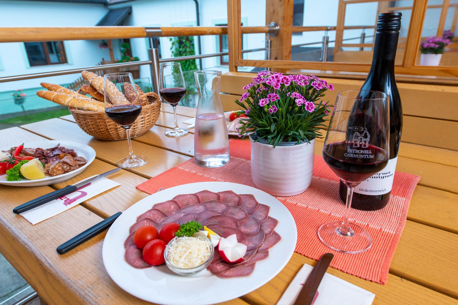 From traditional Heurigen platters to seasonal specialties, our menu offers a wide range of dishes for the hungry and connoisseurs. All meat dishes are home-made. We still do our own sausage, souring and smoking. For dates of haymaking see website www.weingut-herl.at