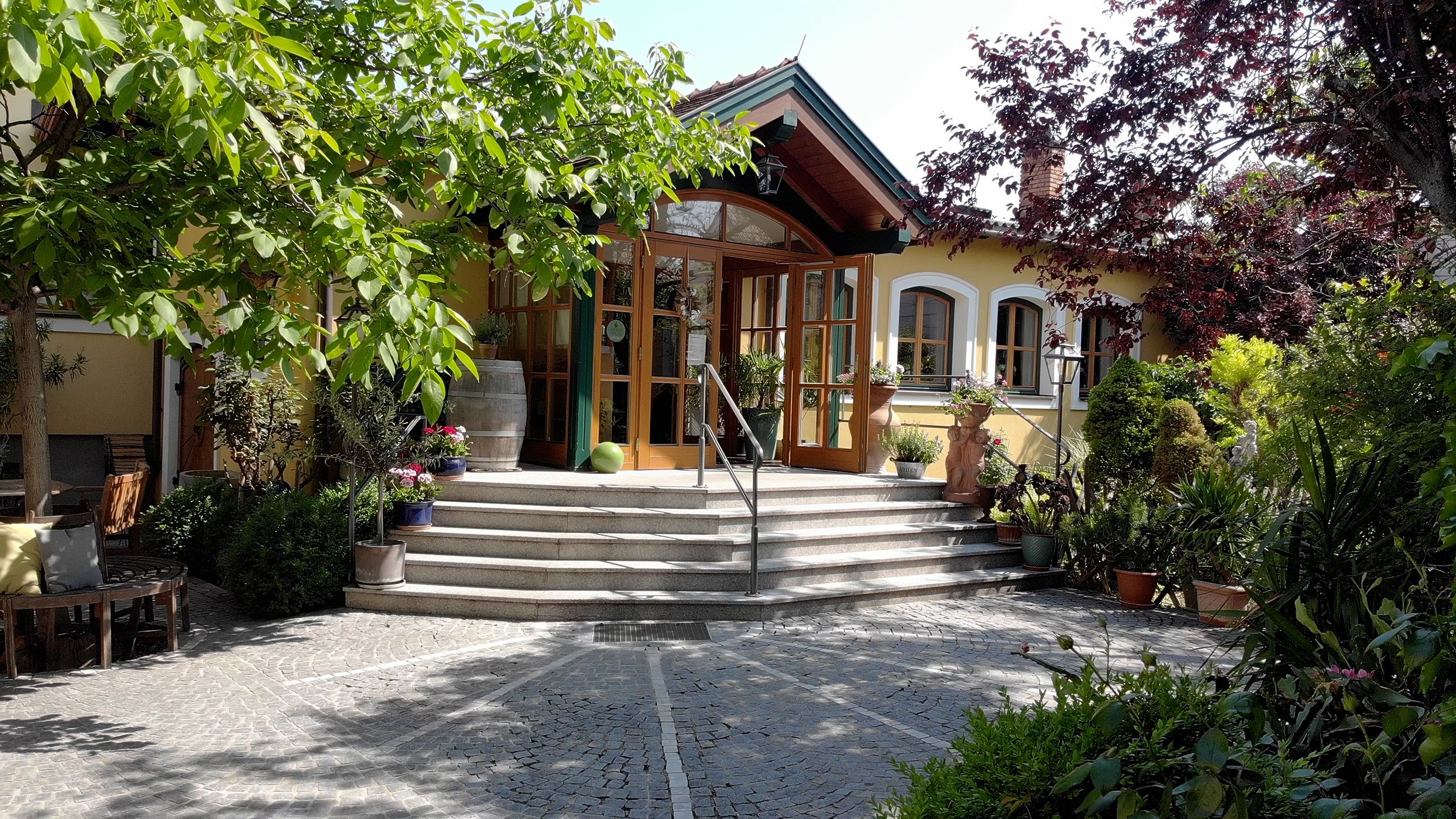 From the veranda with its huge glass wall or the large, leafy terrace, you have a wonderful view of the Sooß vineyards and the picturesque backdrop of the Vienna Woods Biosphere Reserve. Simply relax and enjoy life with a glass of fine wine!